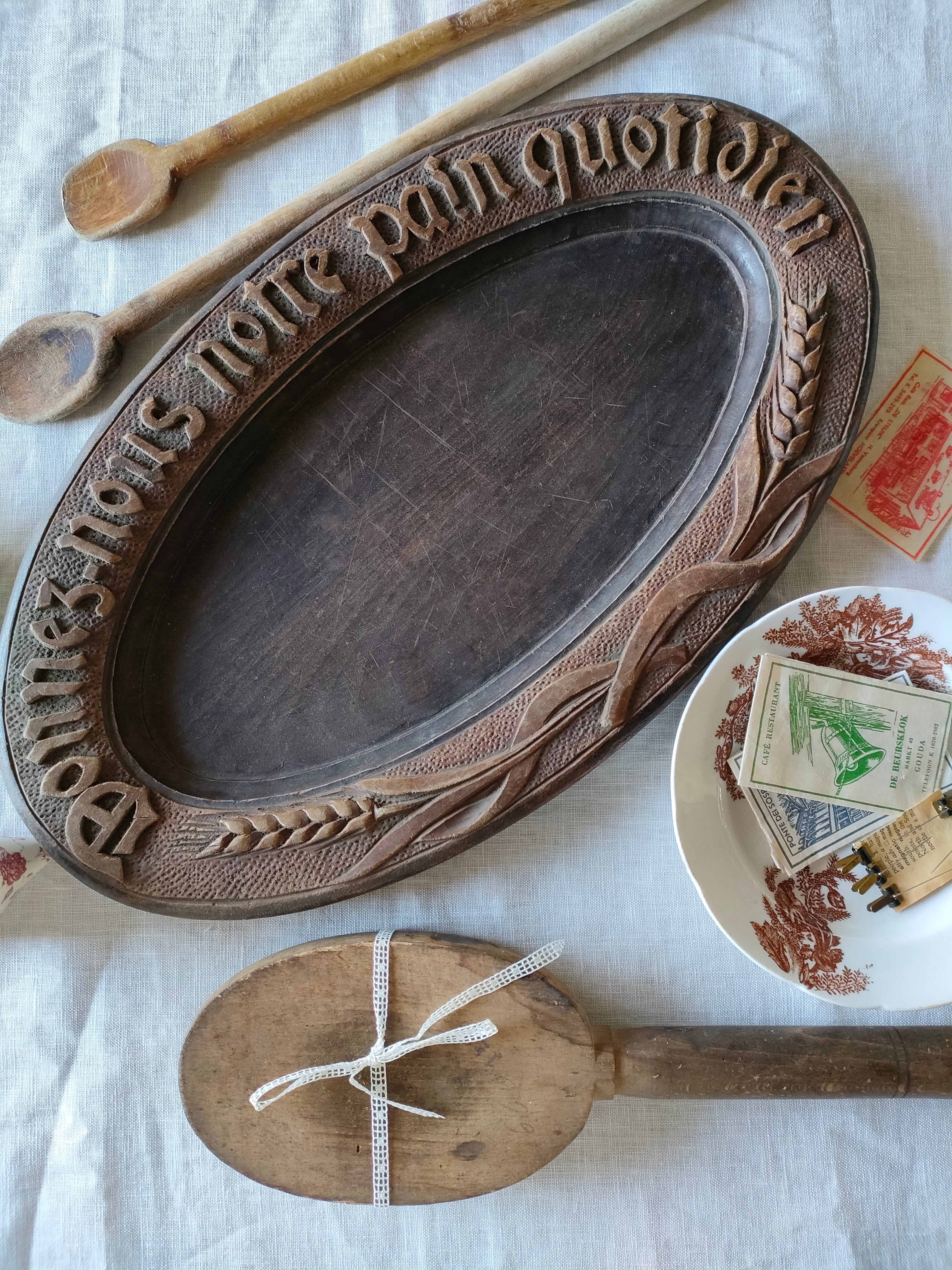 フランスより届きました、一枚板で細部にまで美しさにこだわったアンティークのブレッドボードです。