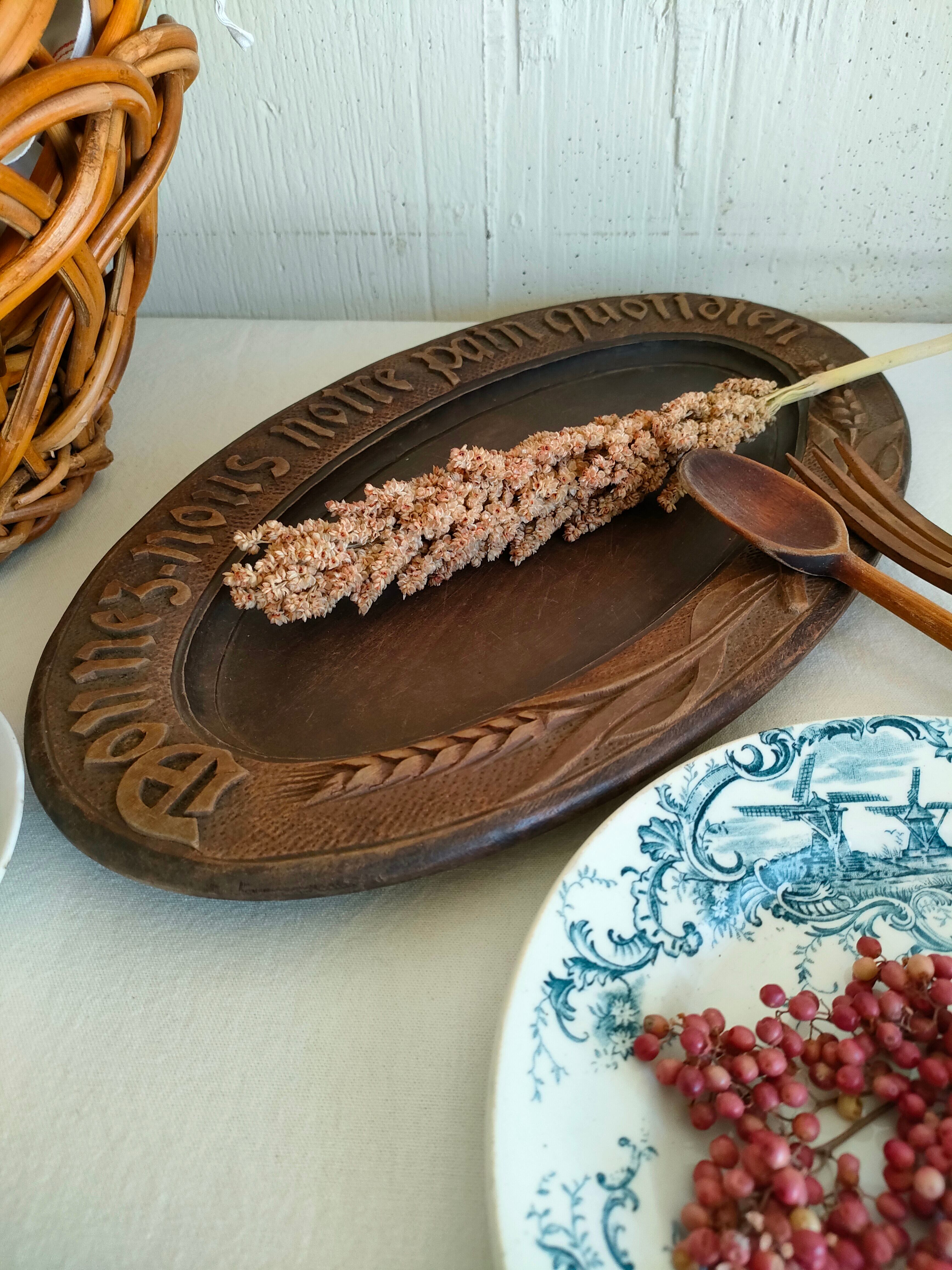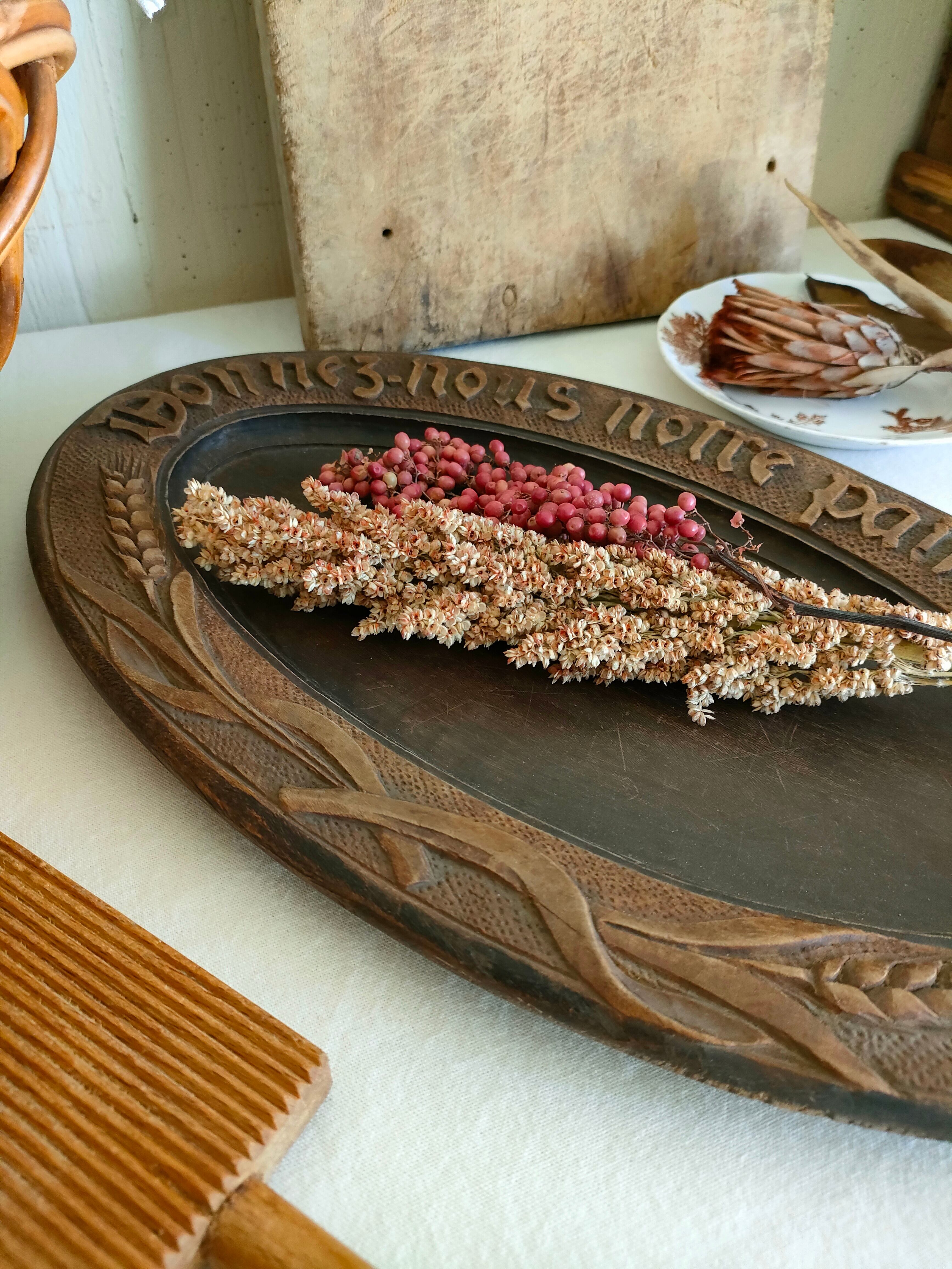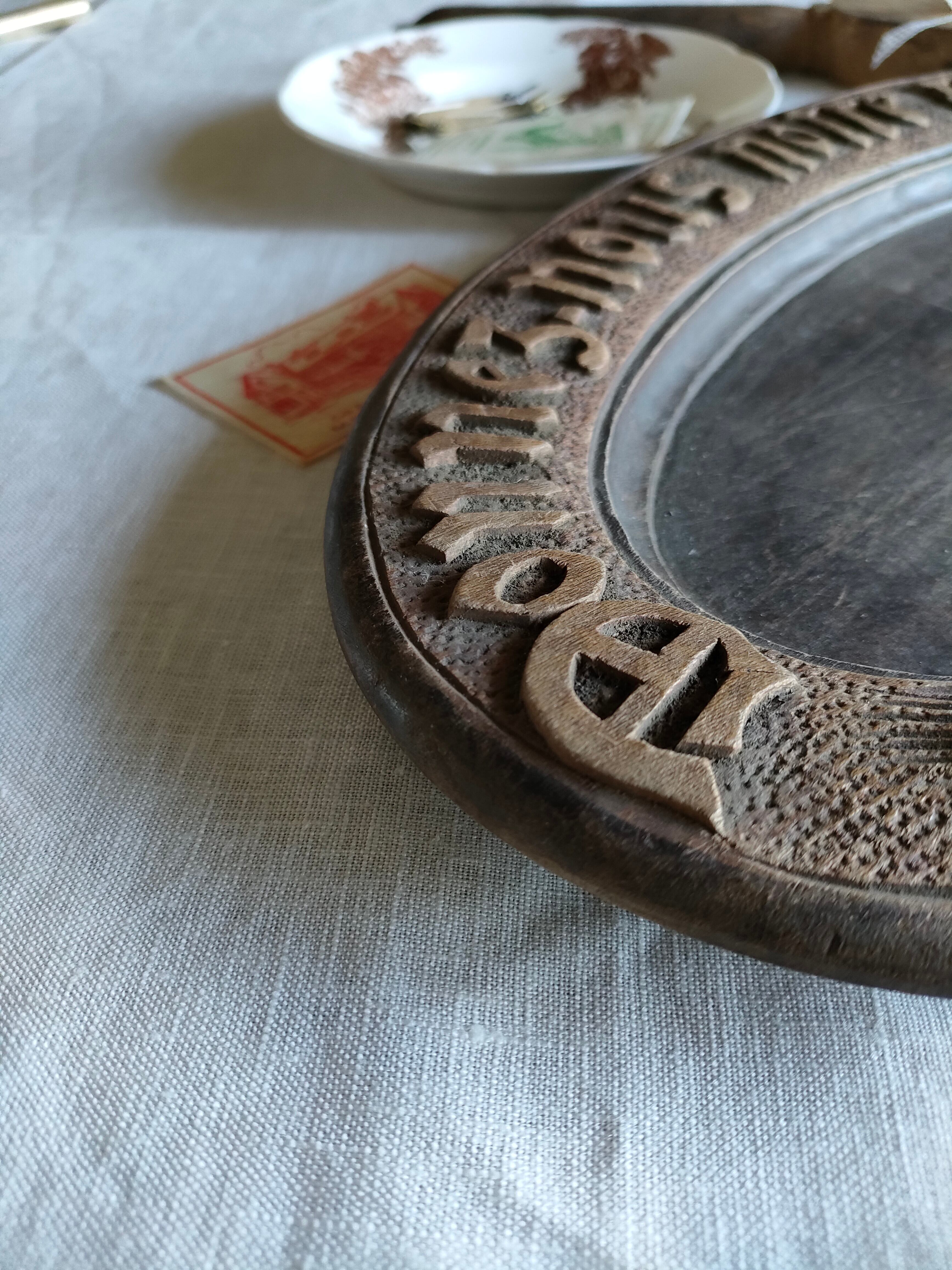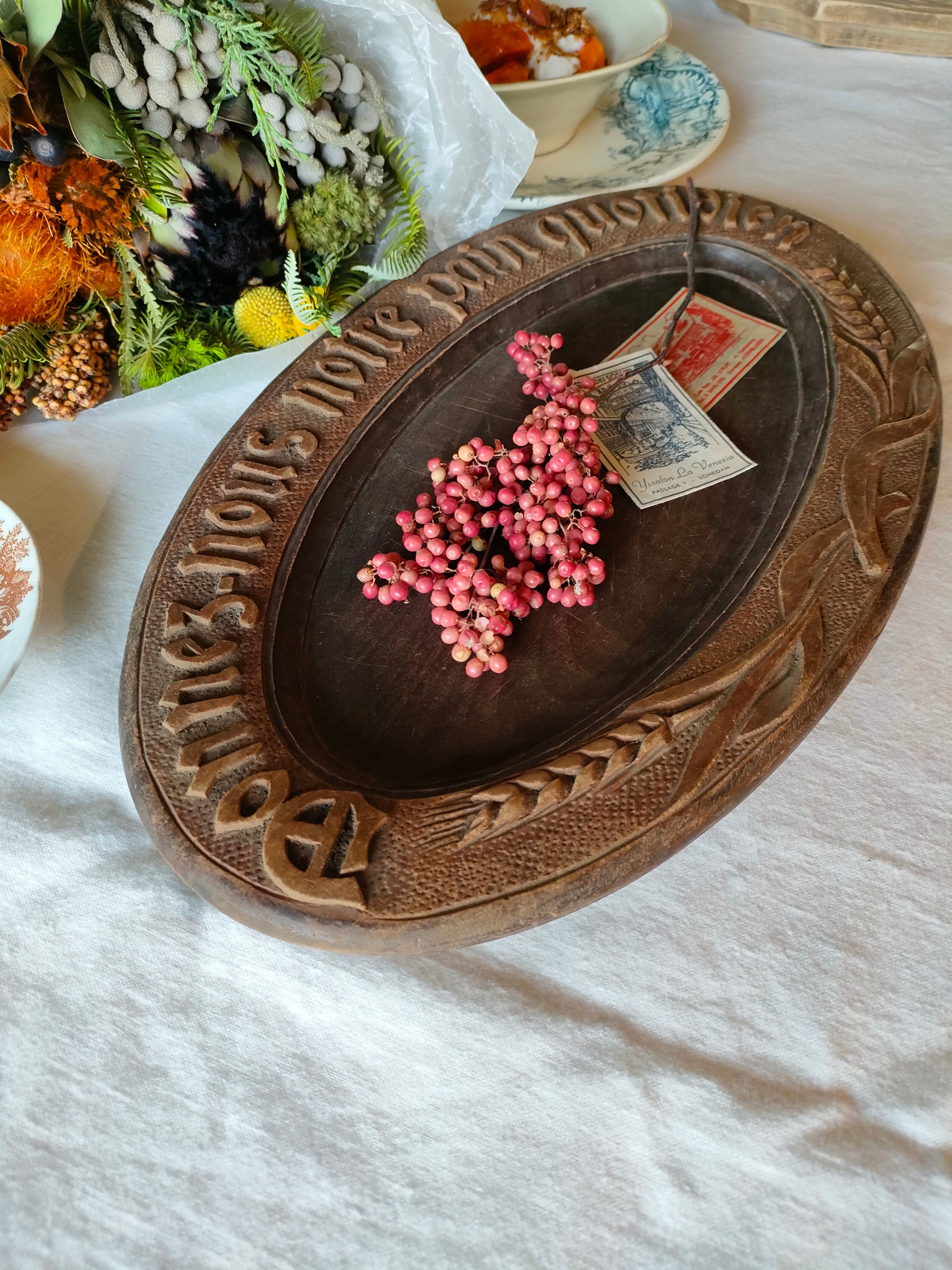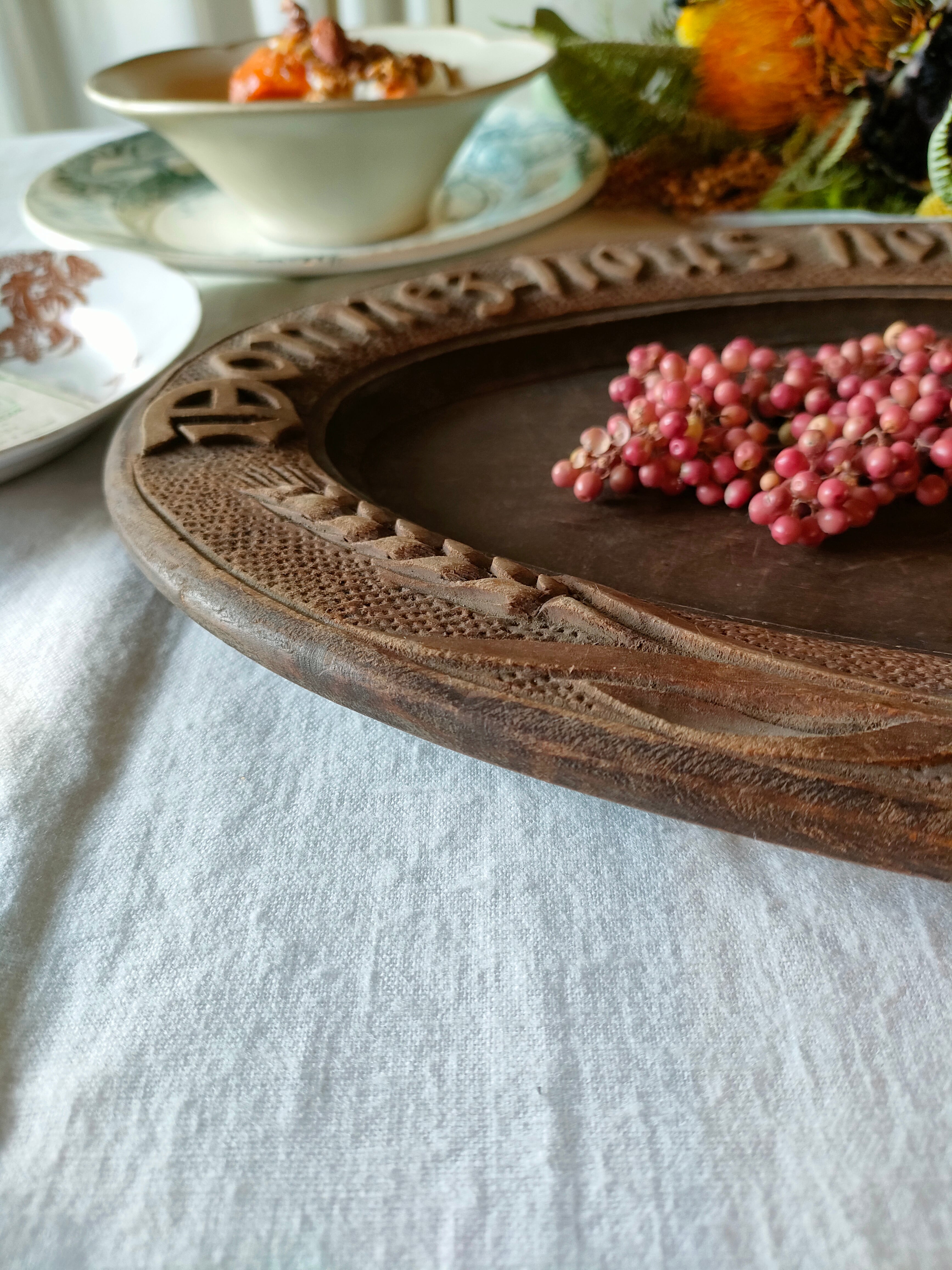 素晴らしい手仕事の彫刻は、テーブルが一気に華やかになる圧倒的な存在感があります。美しく刻まれた文字は、キッチンにディスプレイしてあるだけで、見るたびに心躍るような気持ちに♡