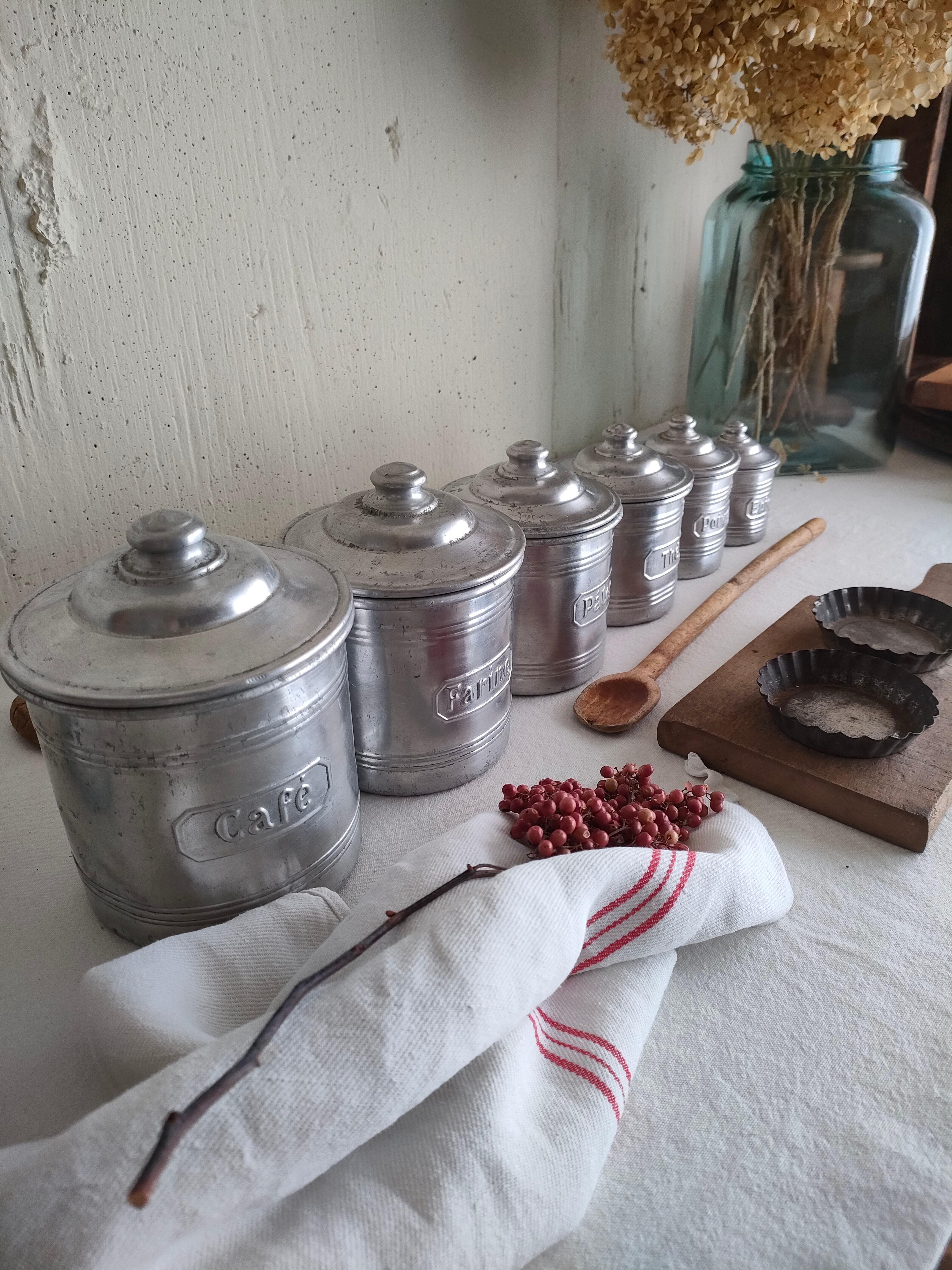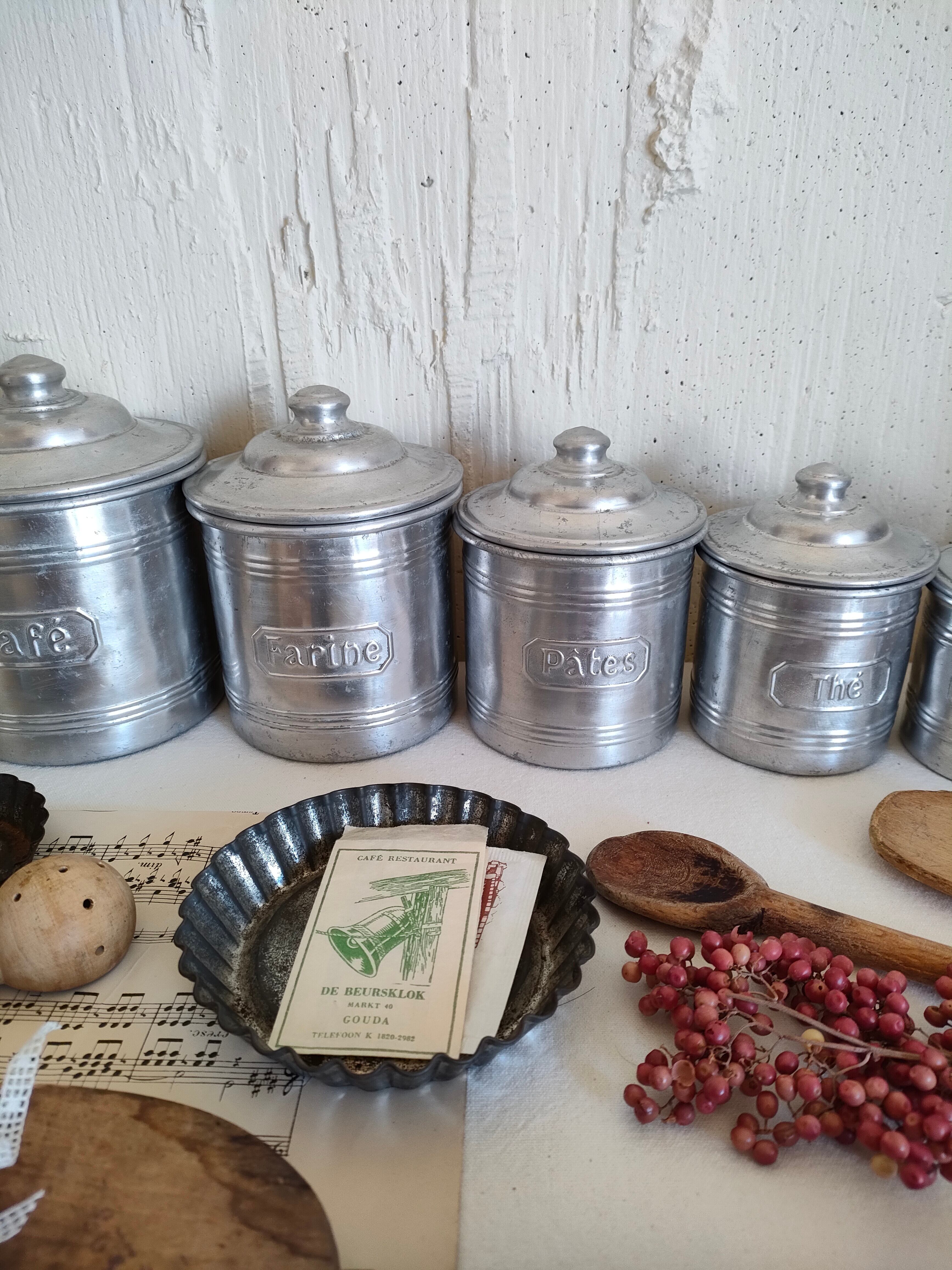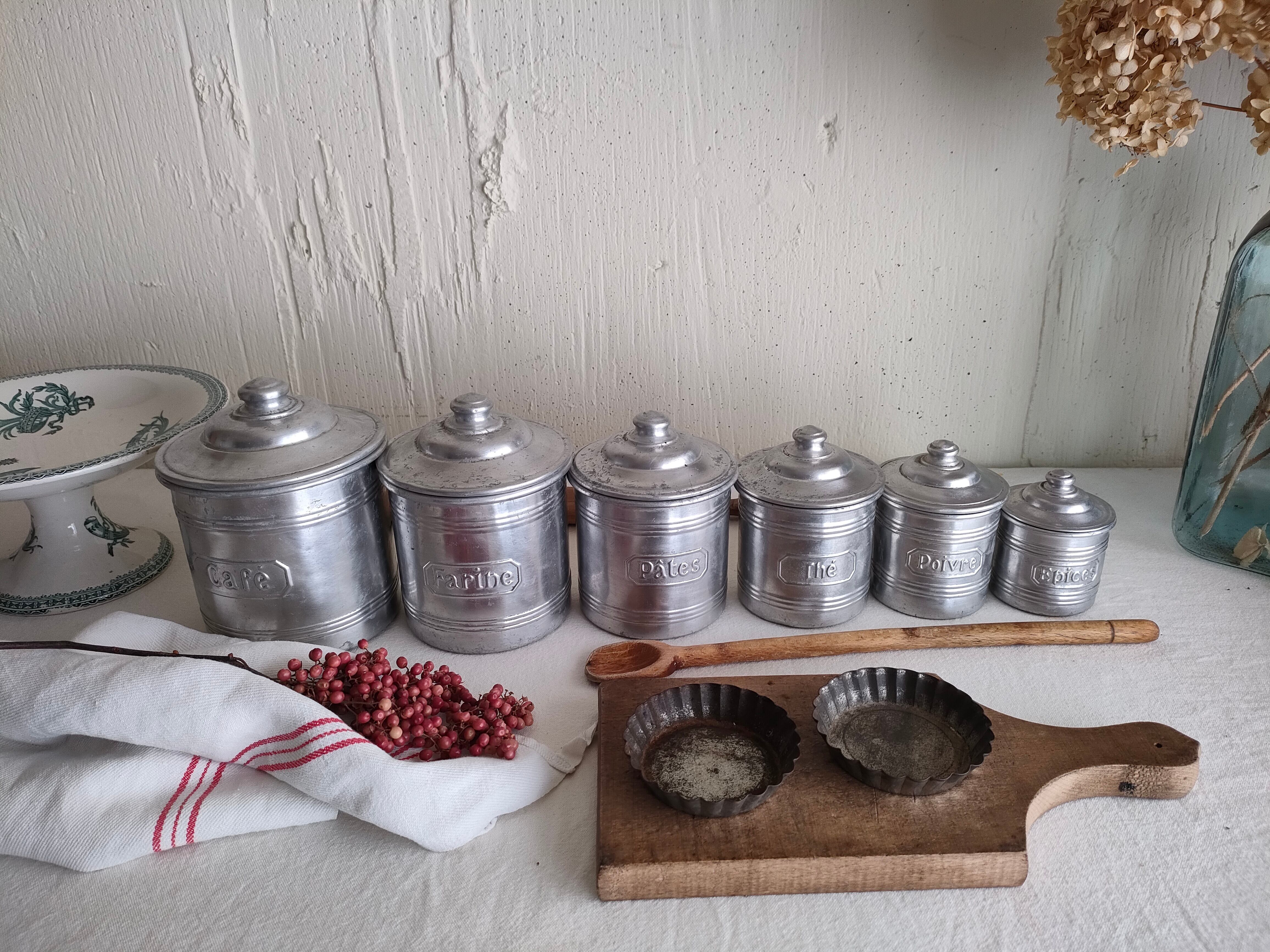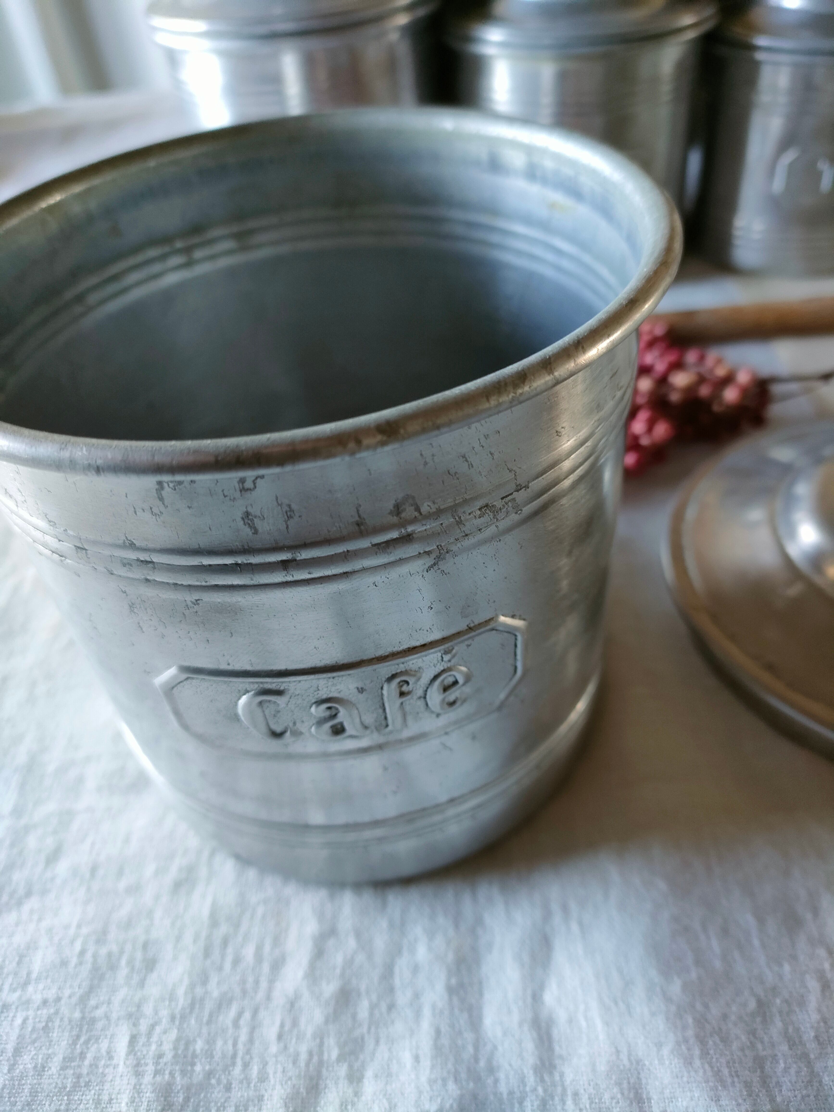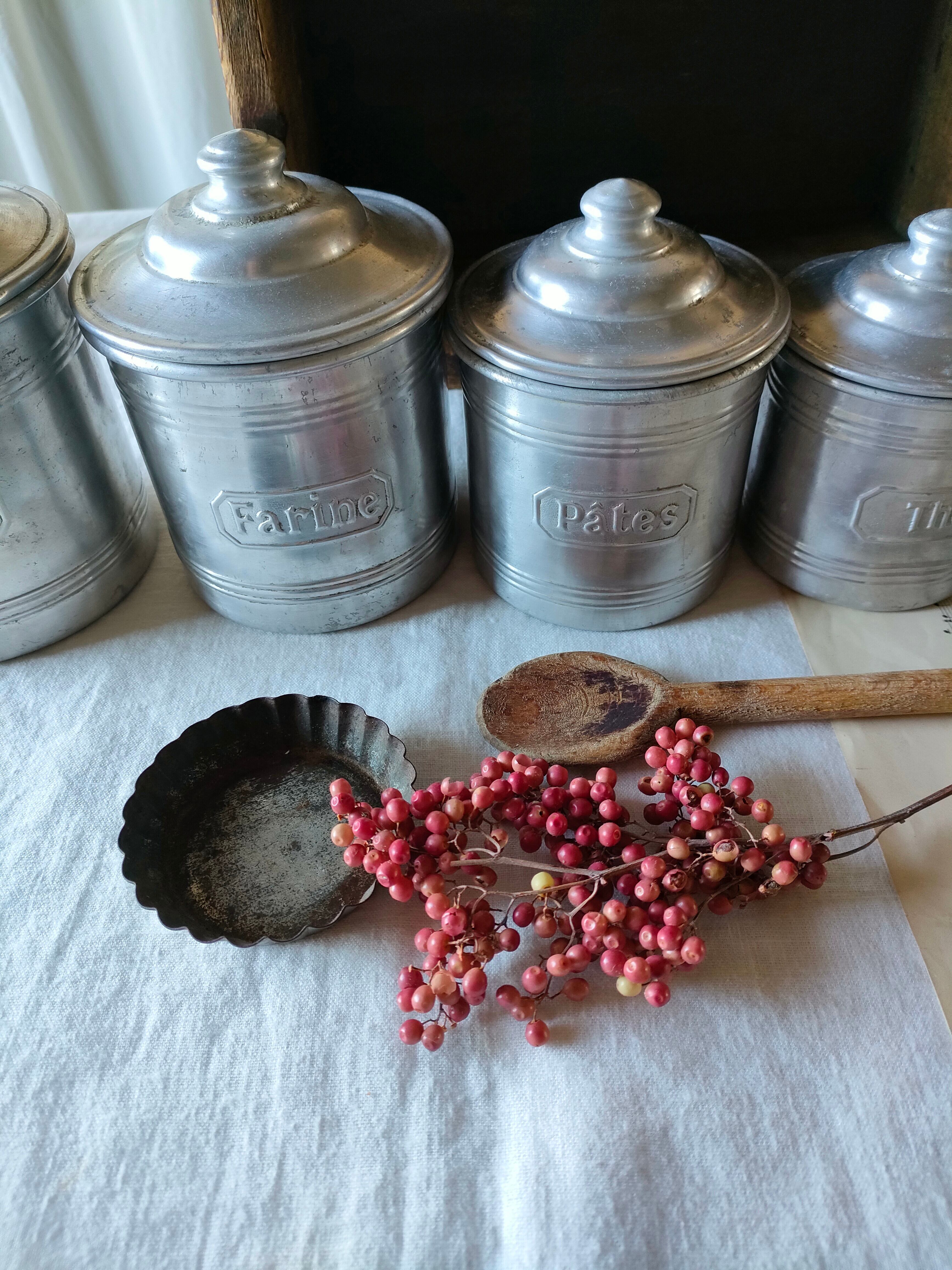 フランスの古いアンティークのアルミのスパイスキャニスターです。