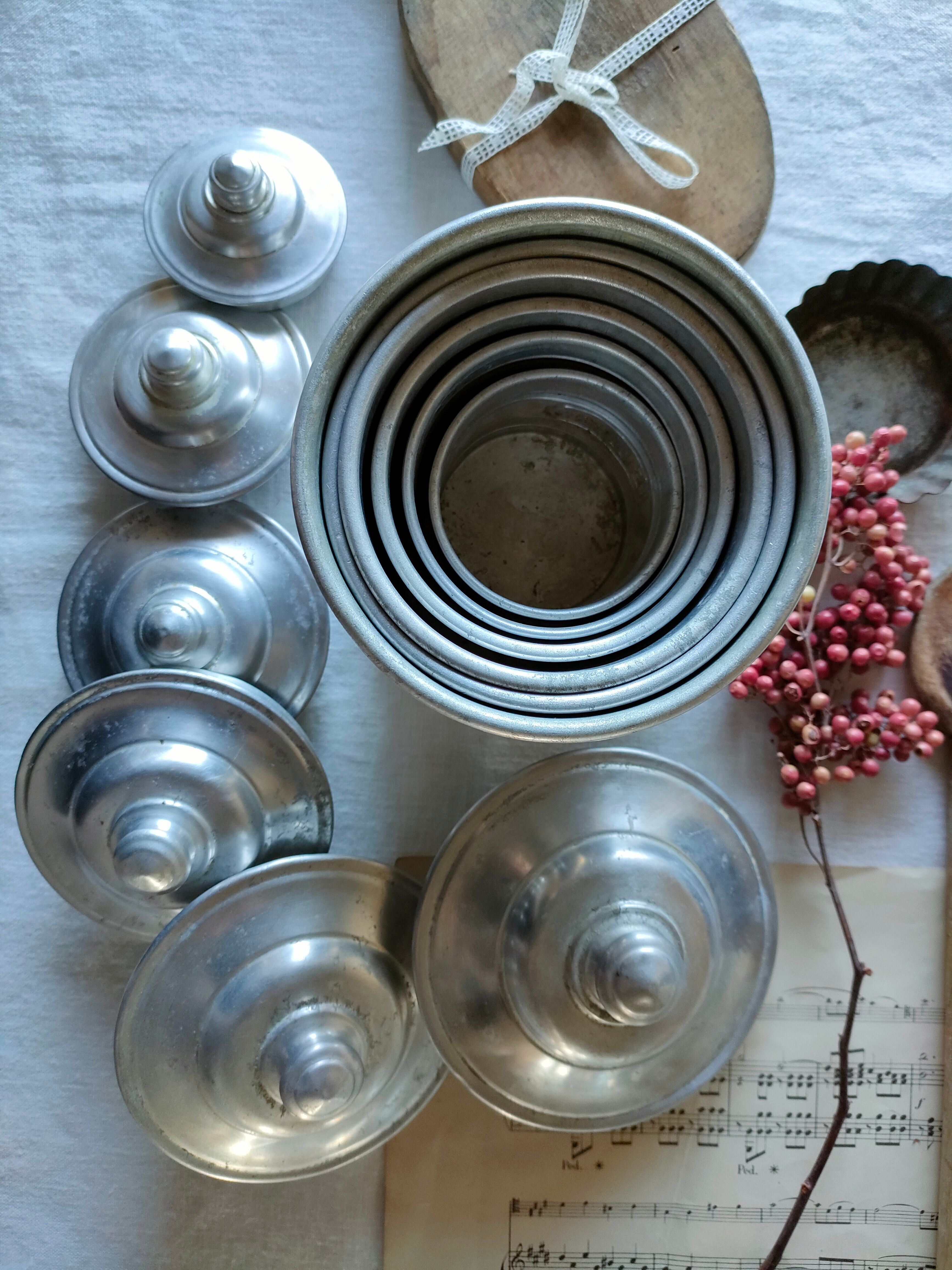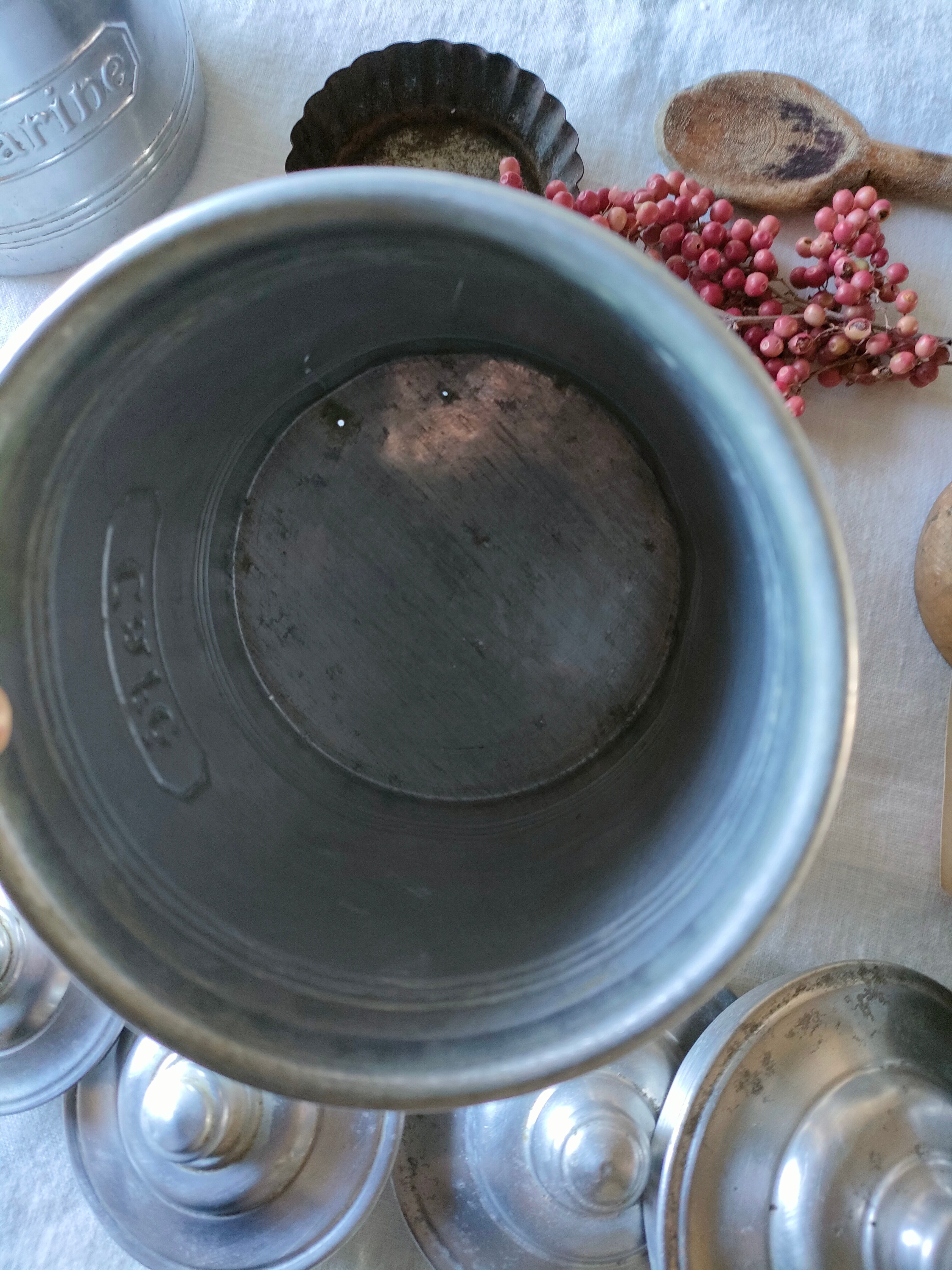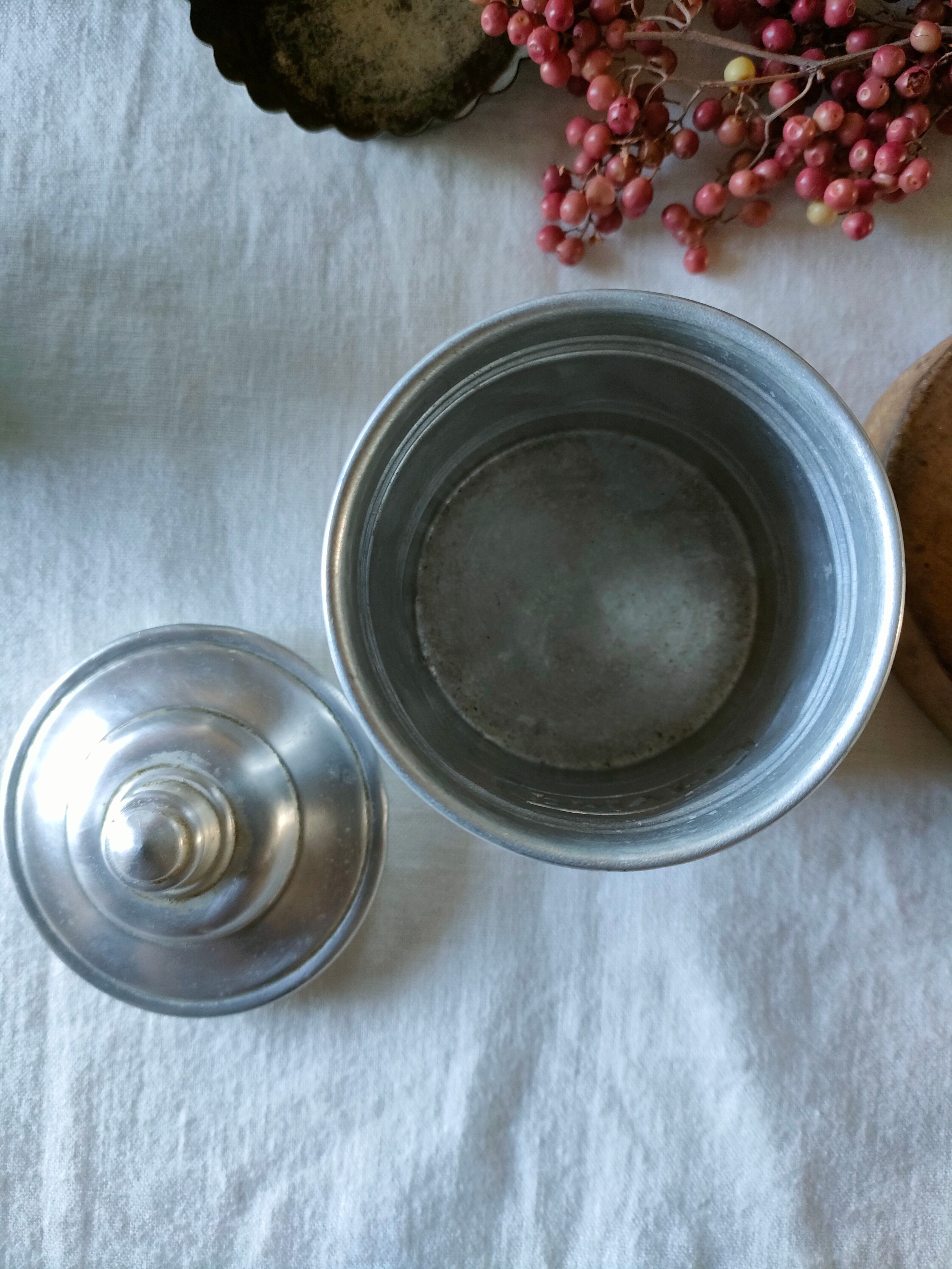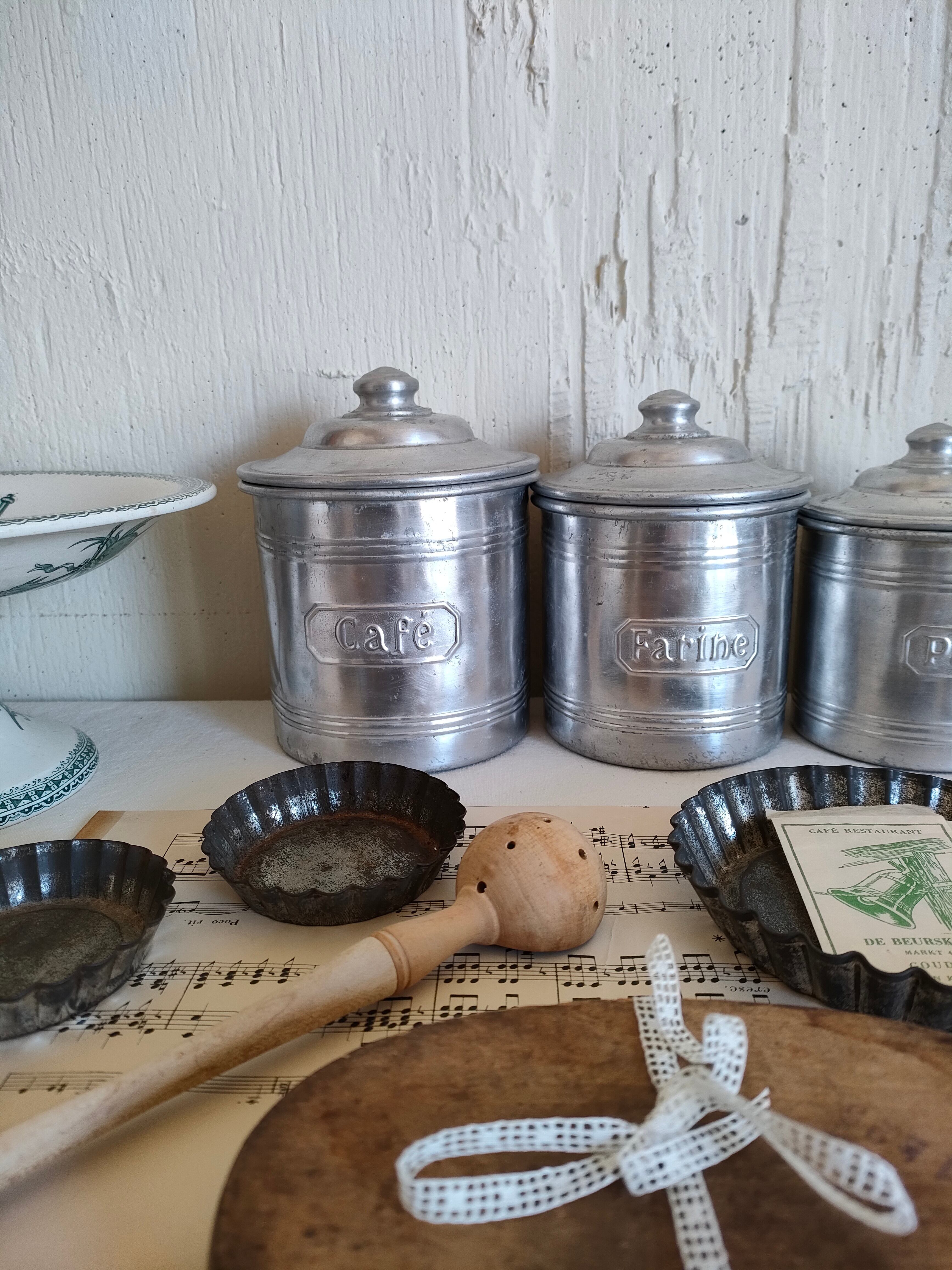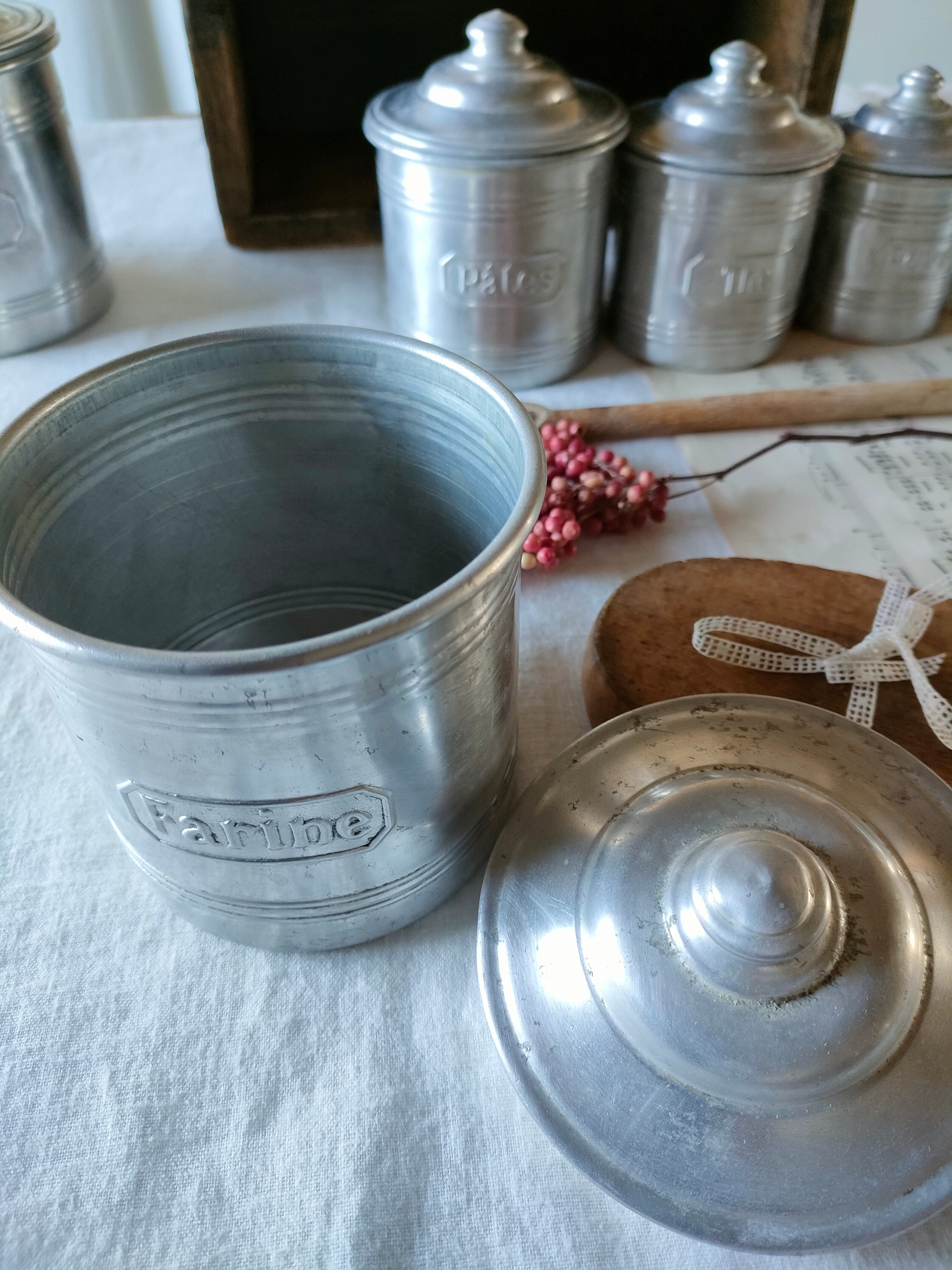 フランスの古いアンティークのアルミのスパイスキャニスターです。