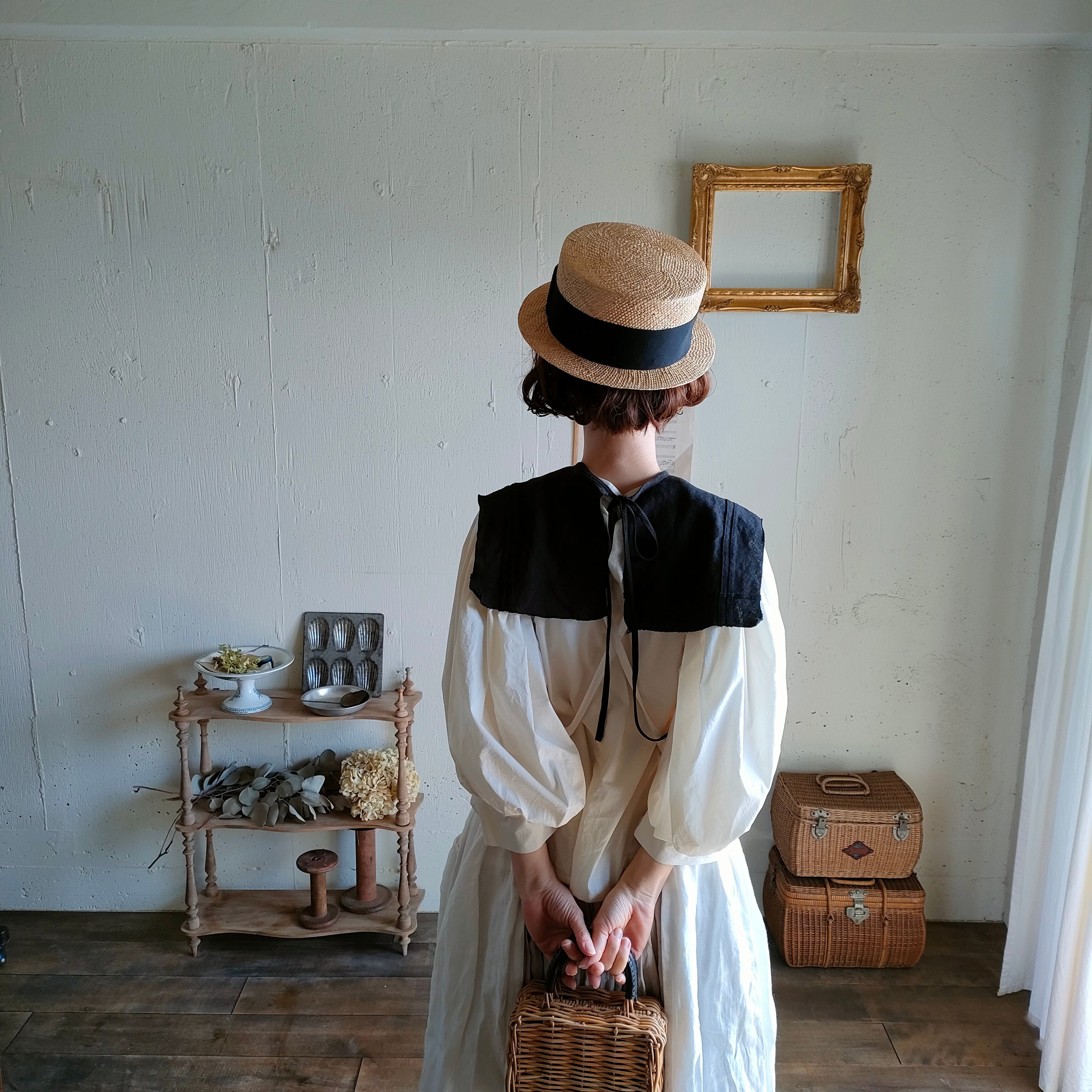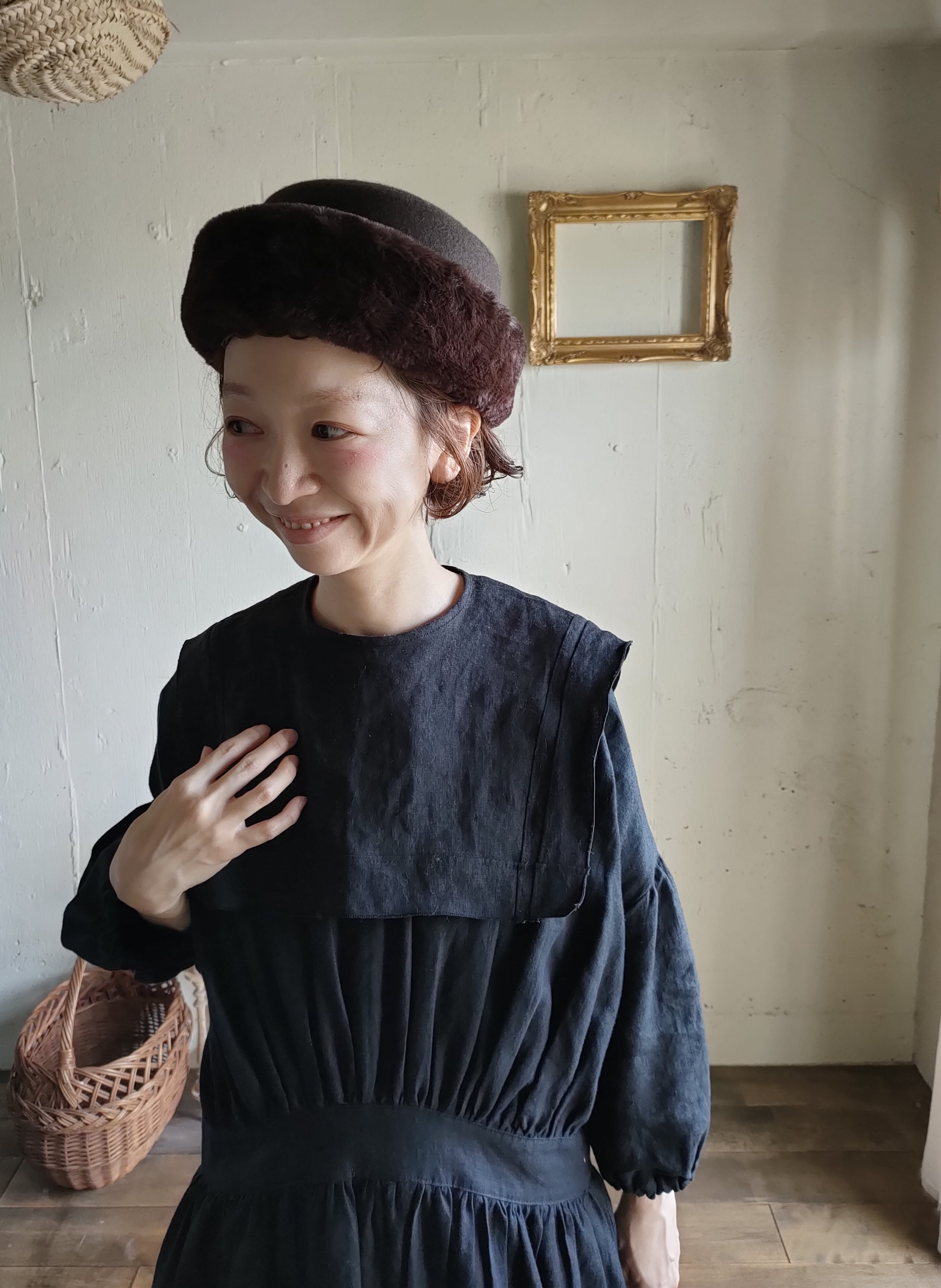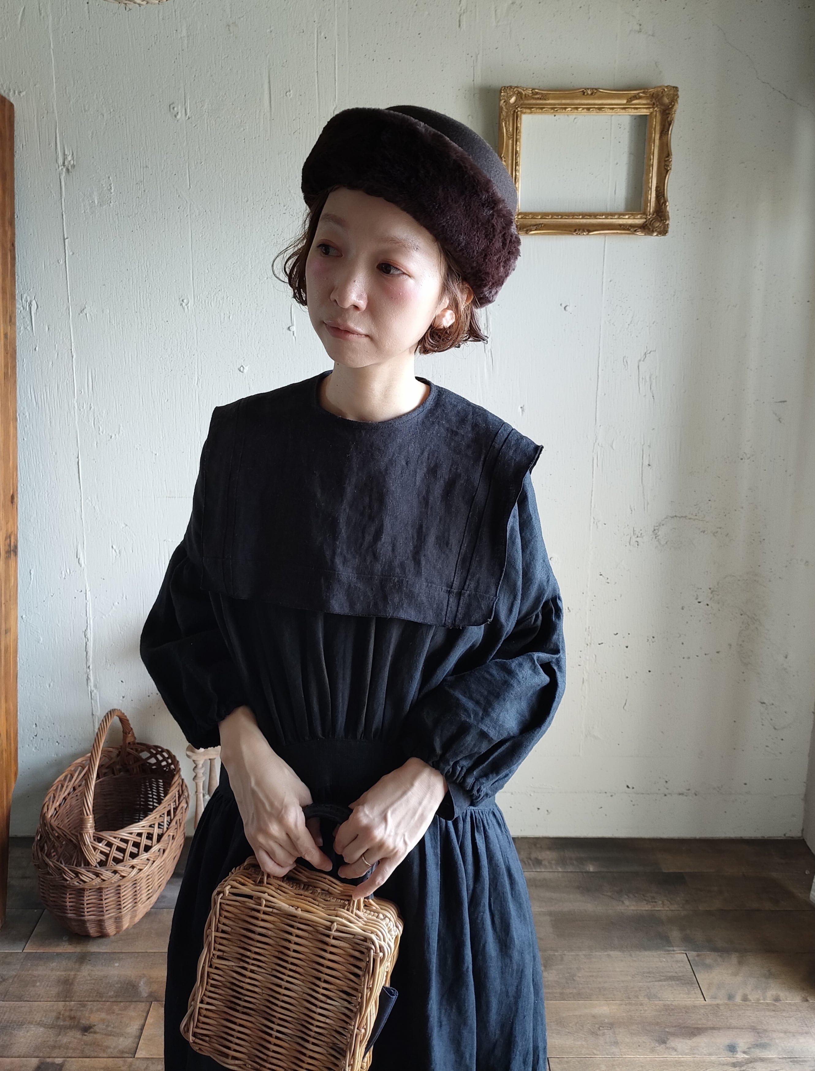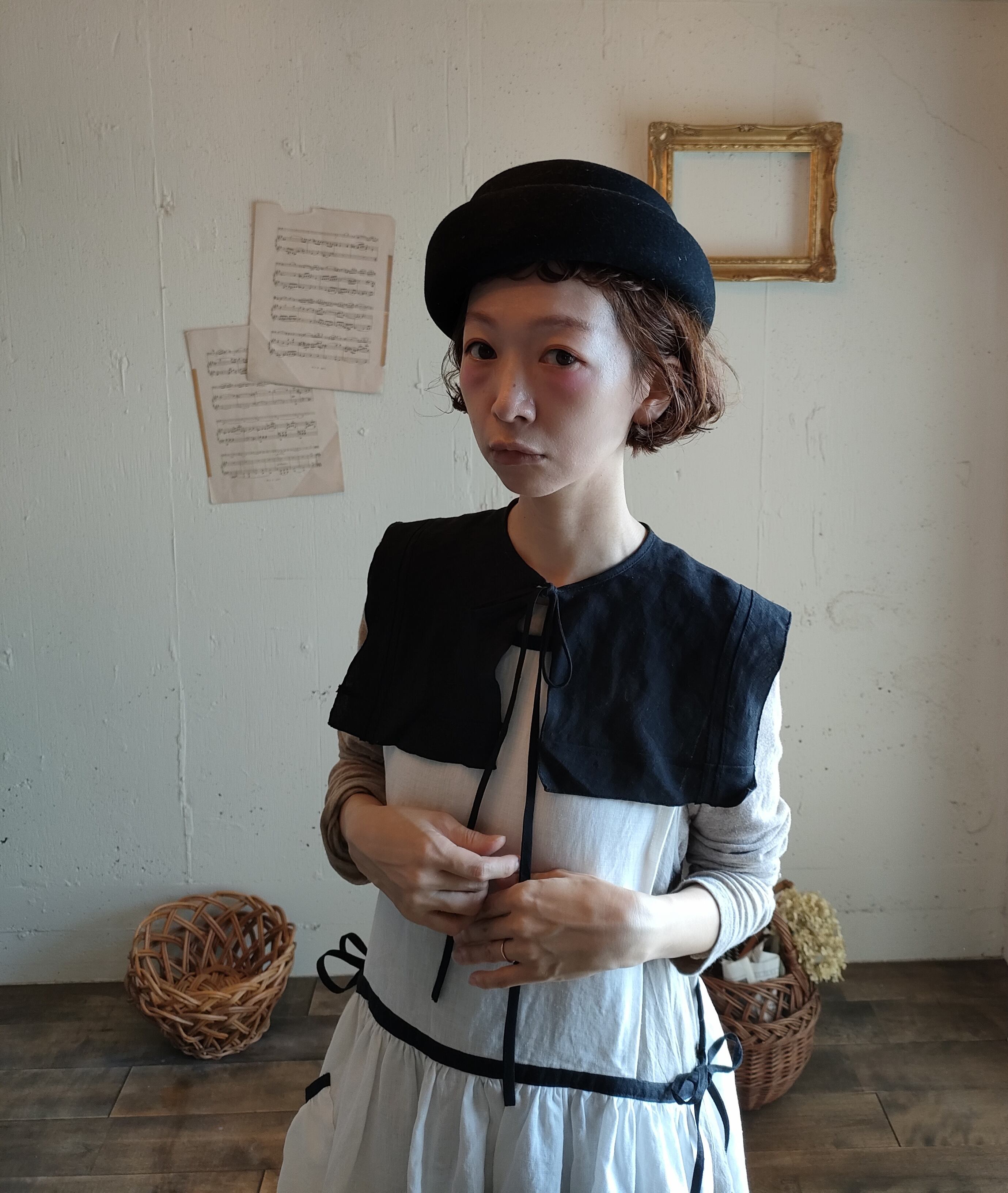 【Dark Black】Antique wash Linen collar 柔らかなアンティークウォッシュリネンのつけ襟 リネンつけ襟 アンティーク加工リネン生地 つけ衿