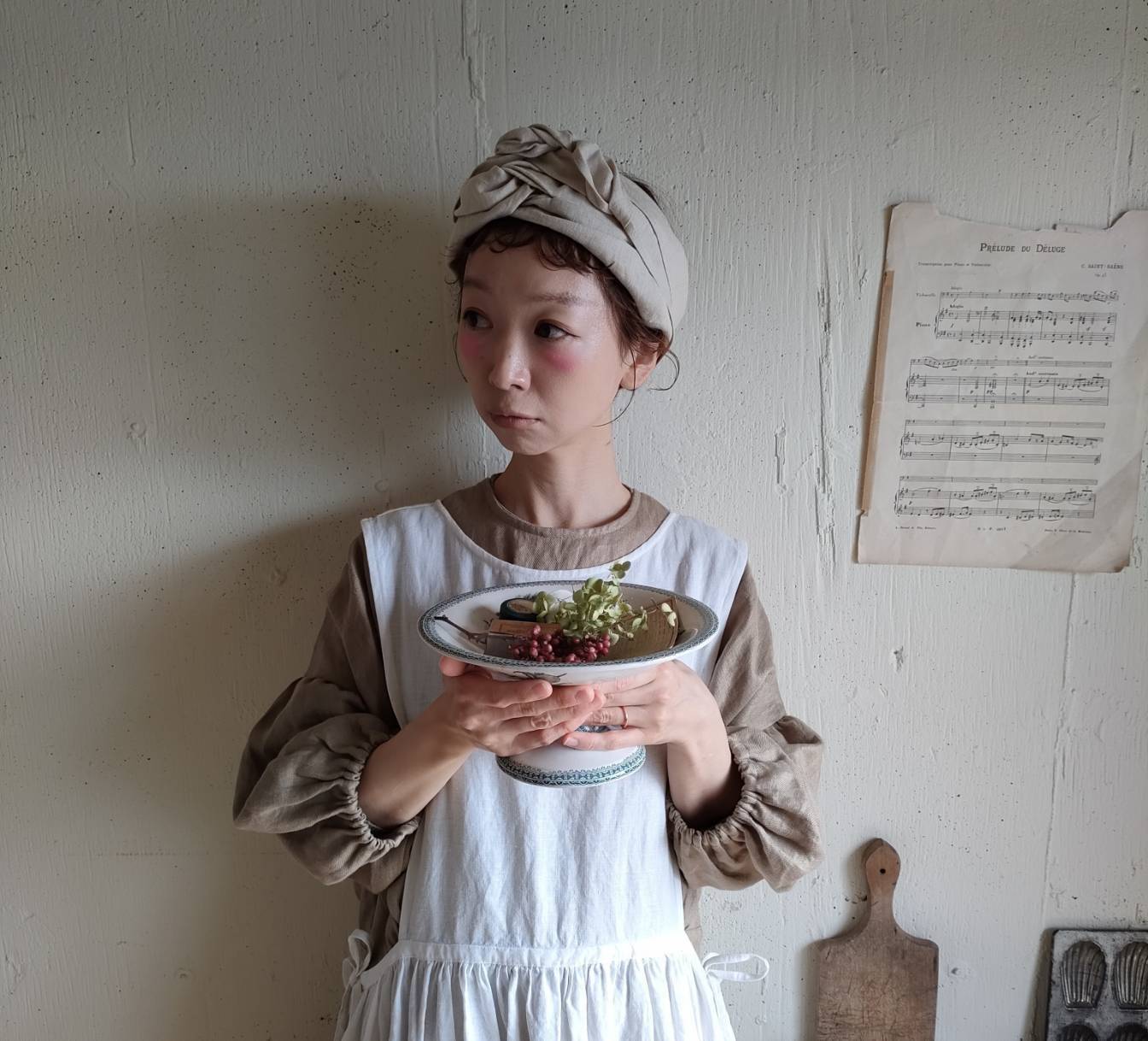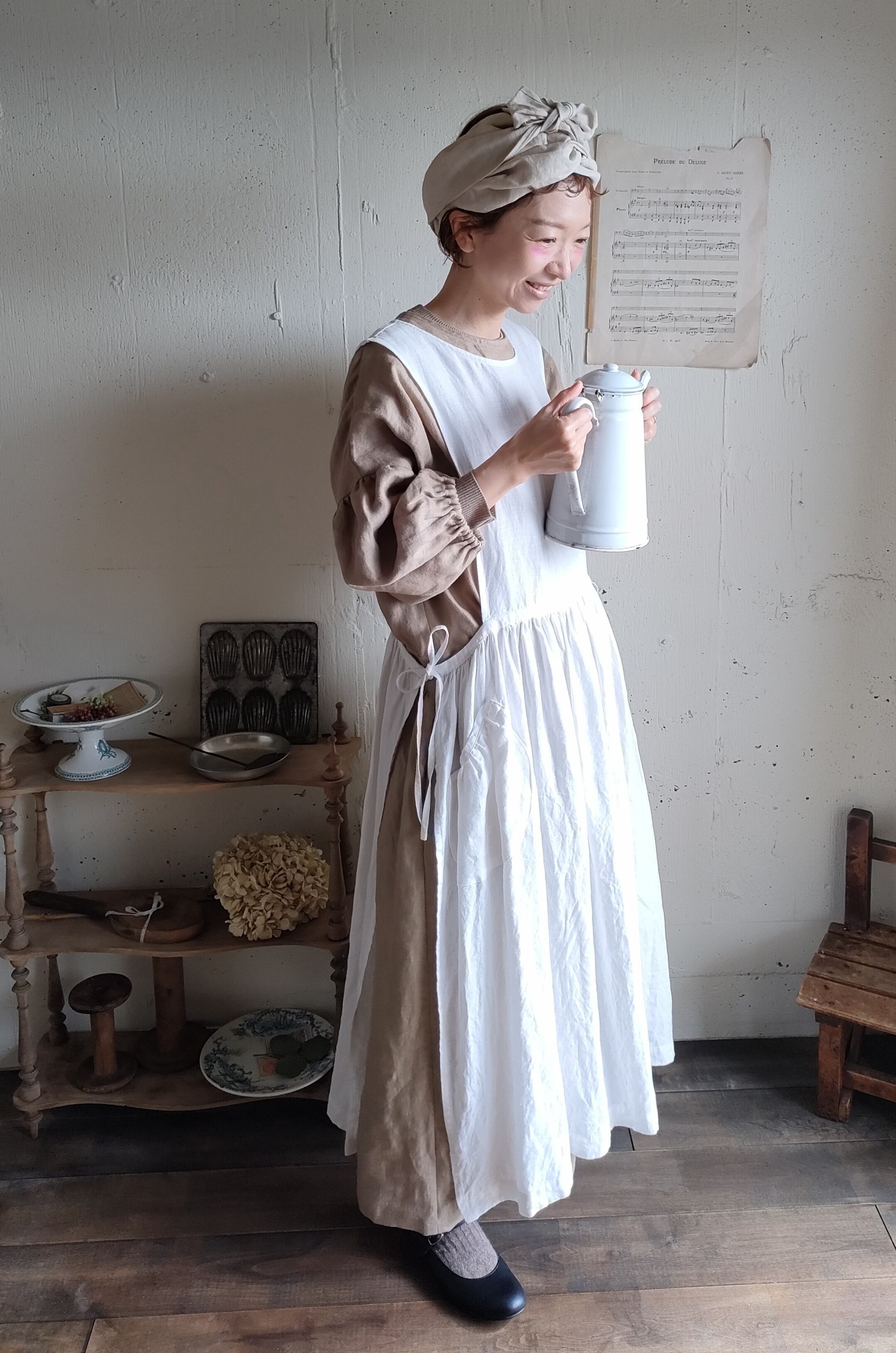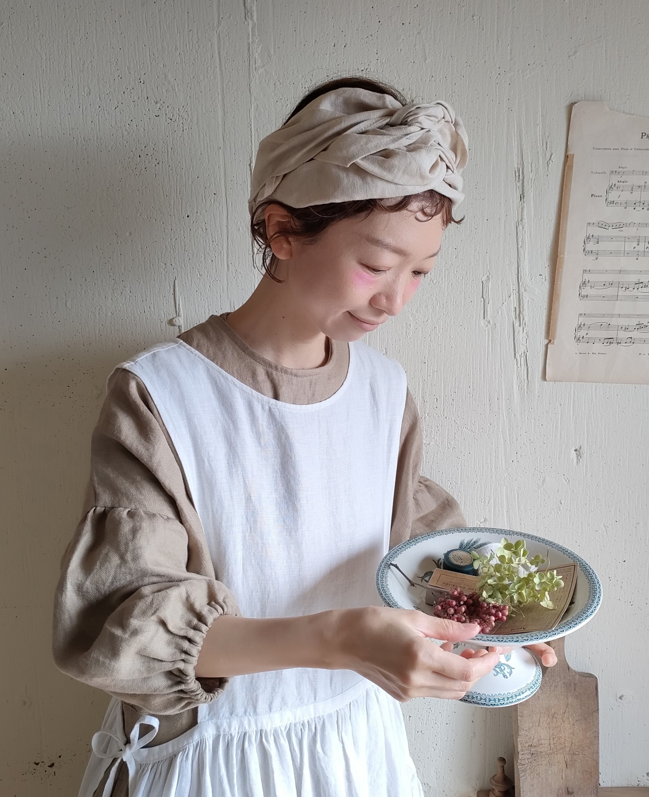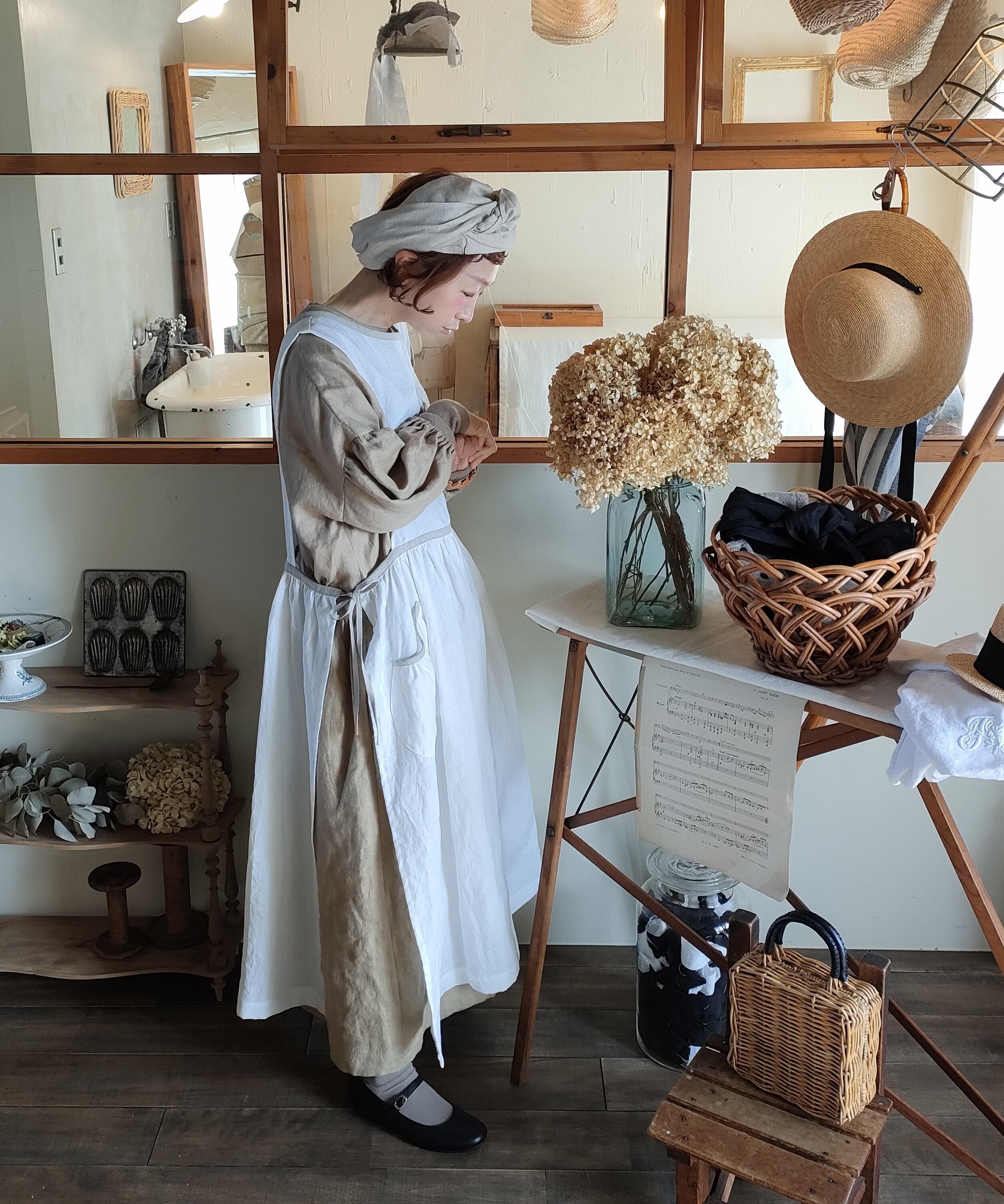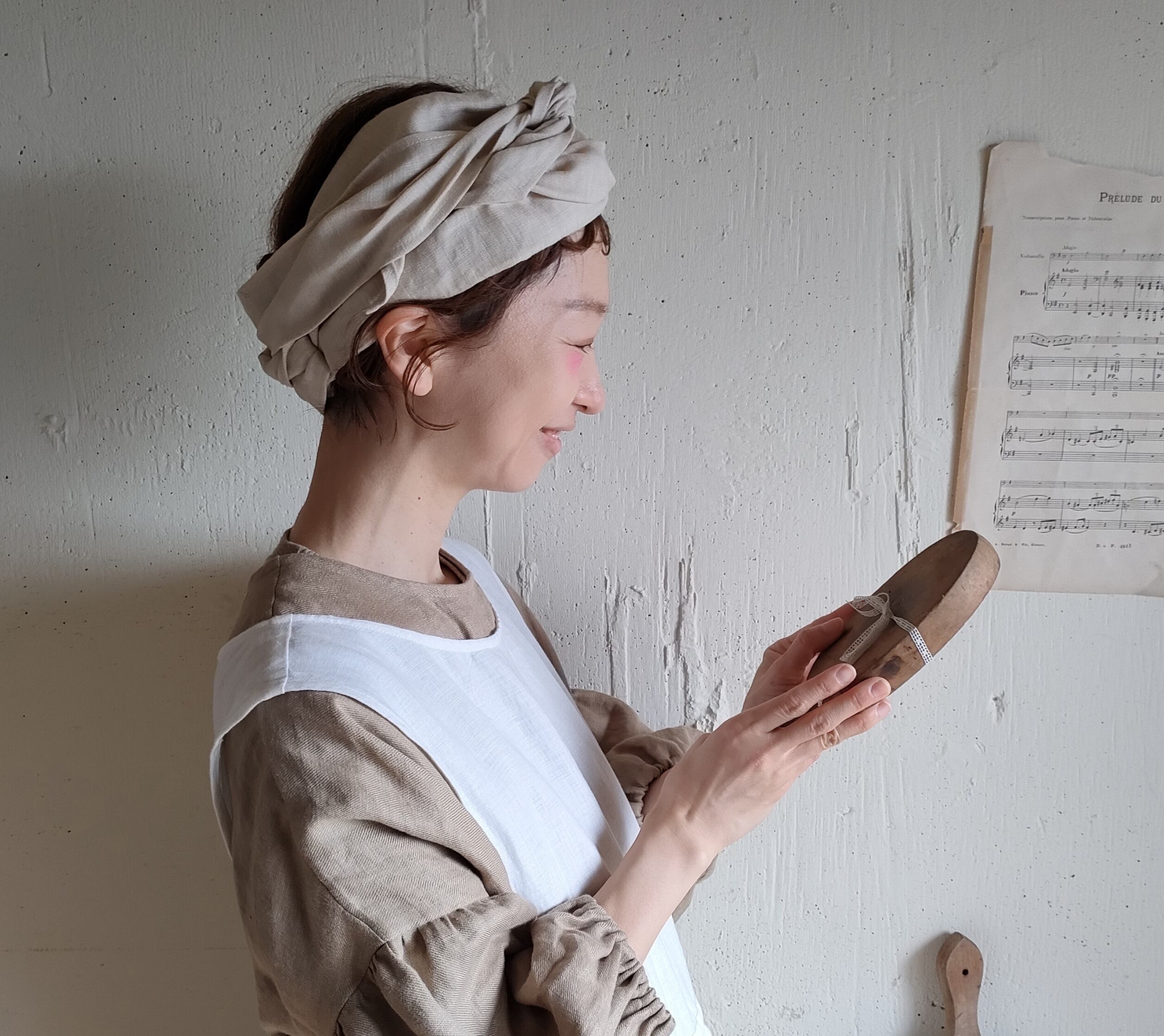 【Ecru Beige】Antique wash Linen cafe Tavern アンティークウォッシュリネンターバン リネンターバン カフェターバン