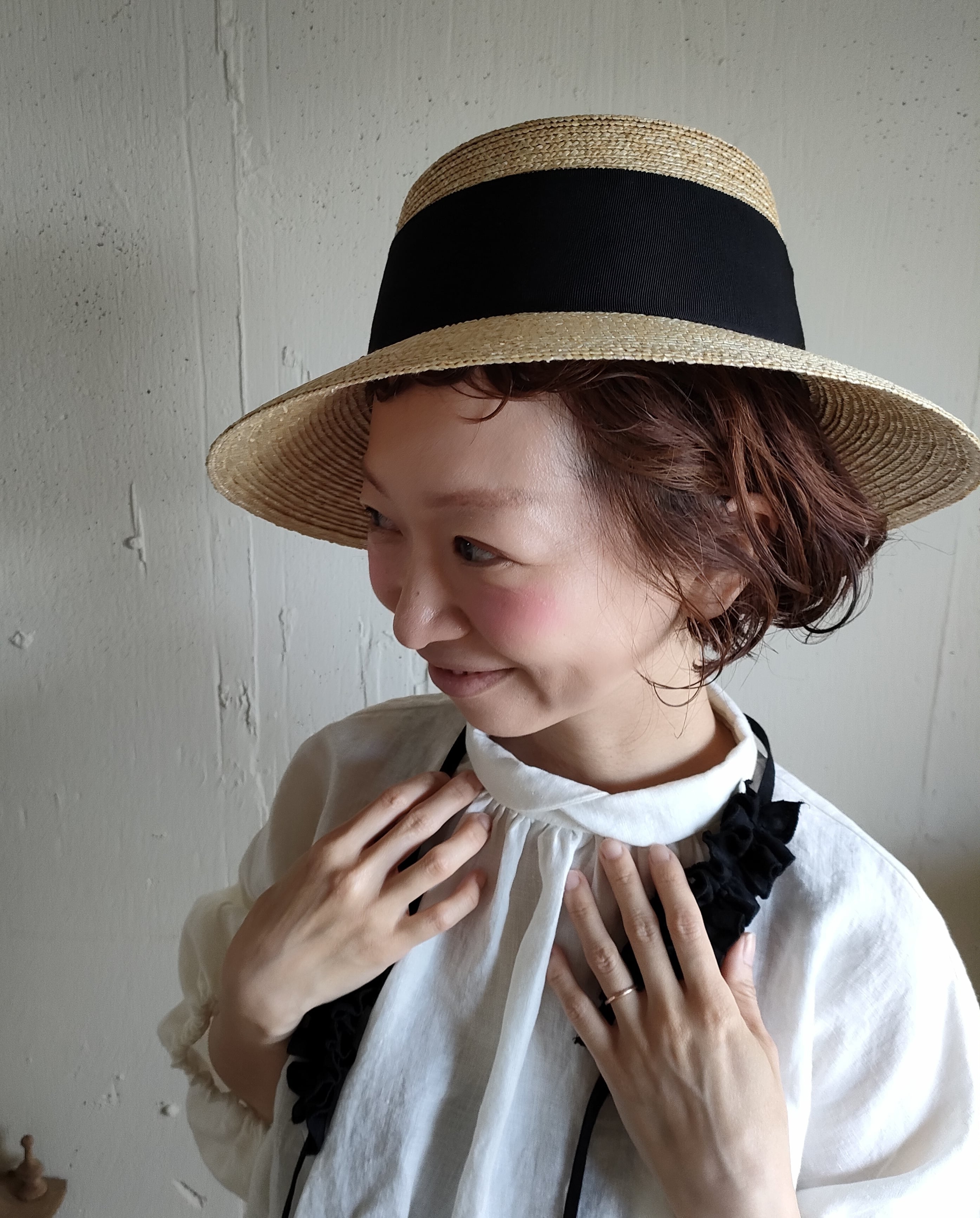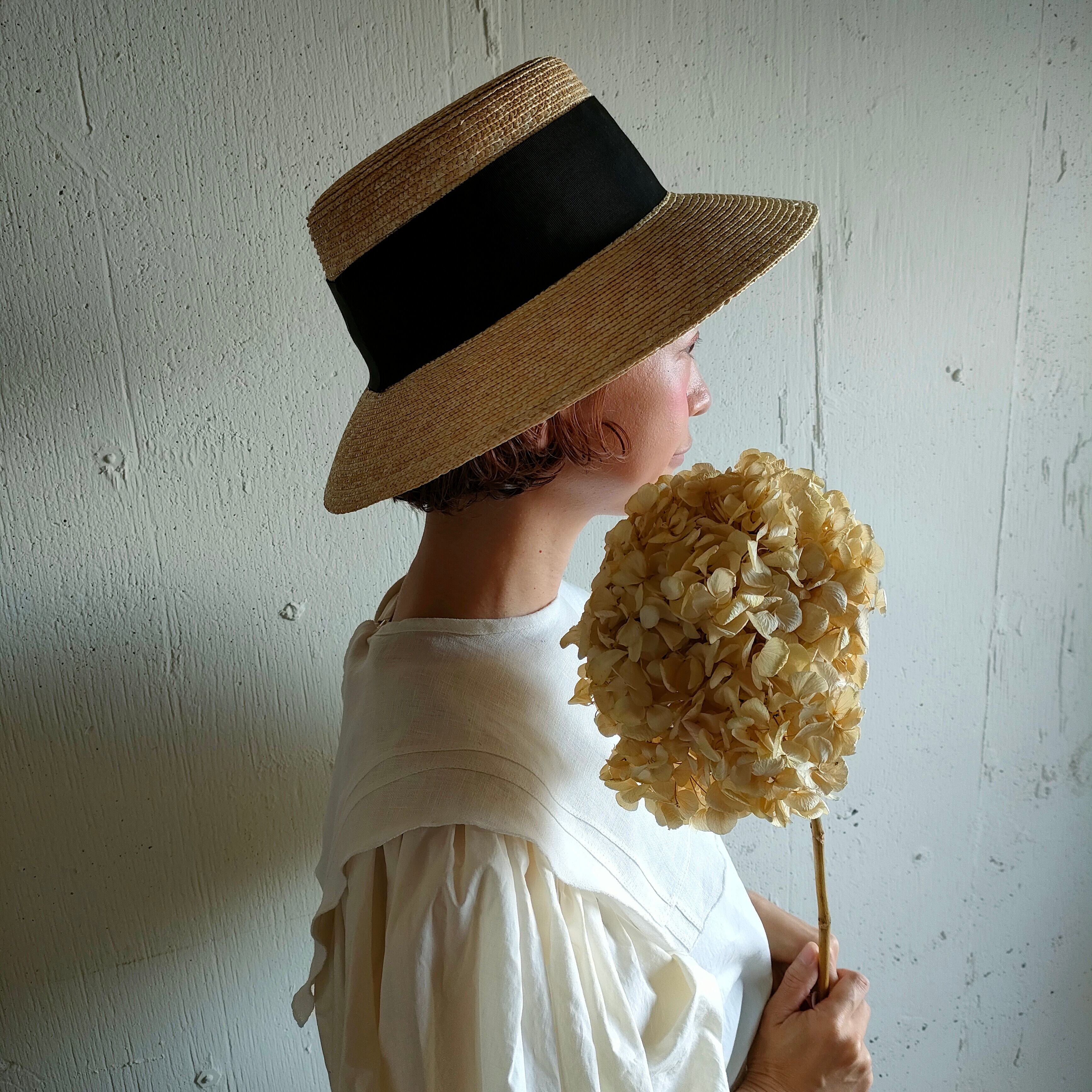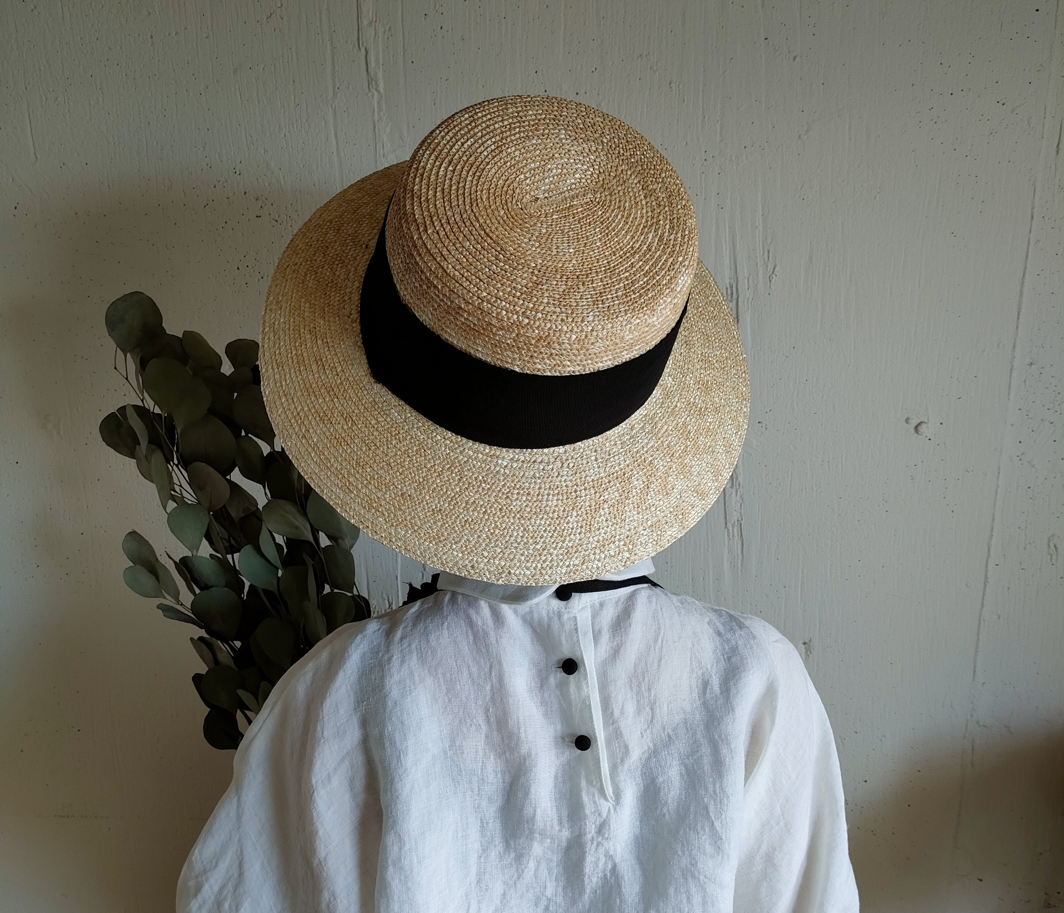 送料無料◆Natural Straw Hat Black Ribbon ナチュラル麦わら帽子 カンカン帽 ストローハット