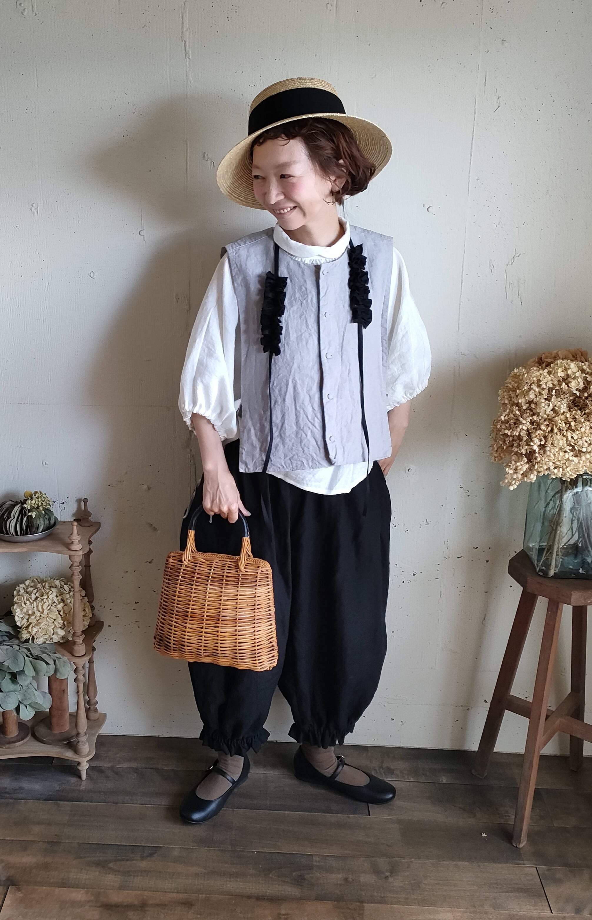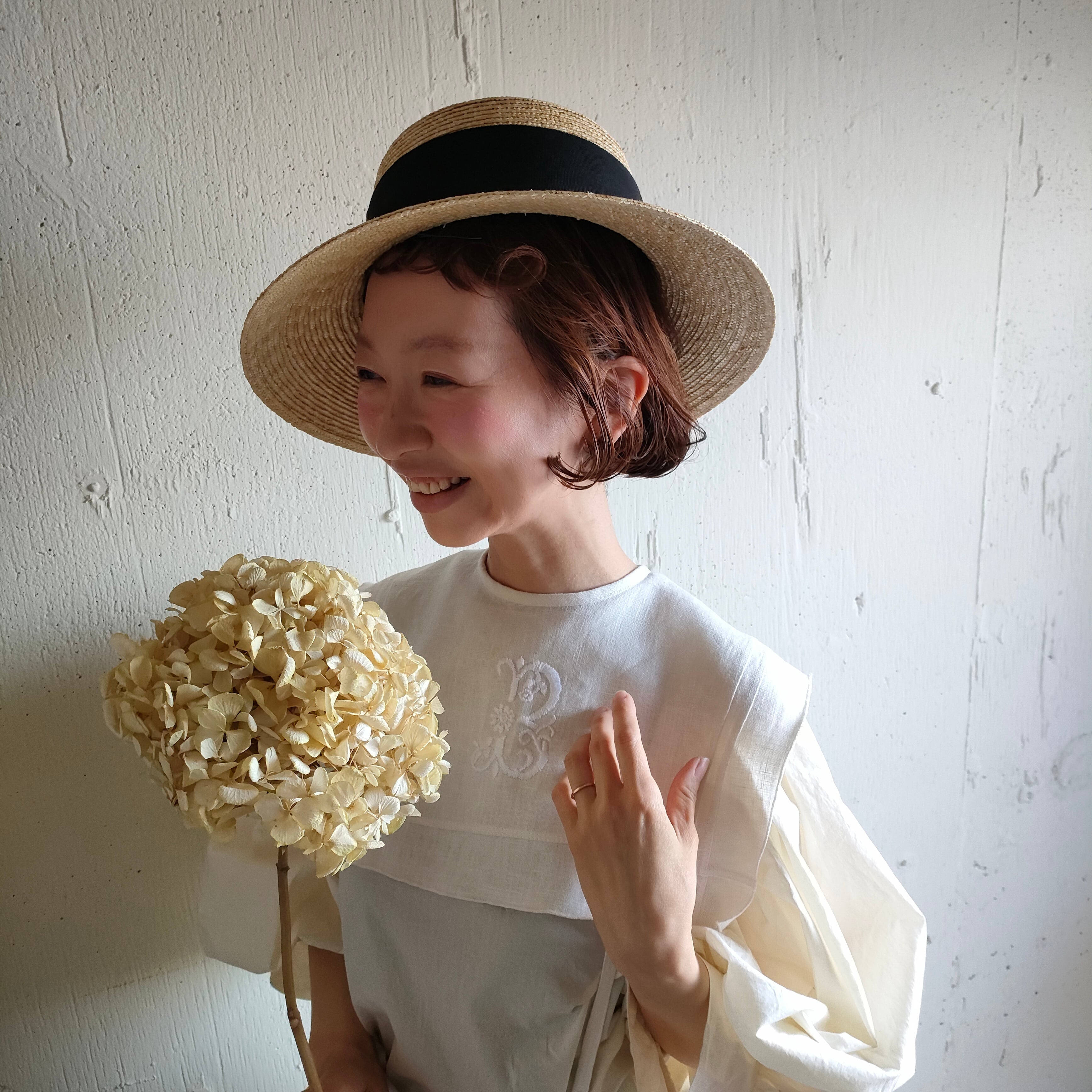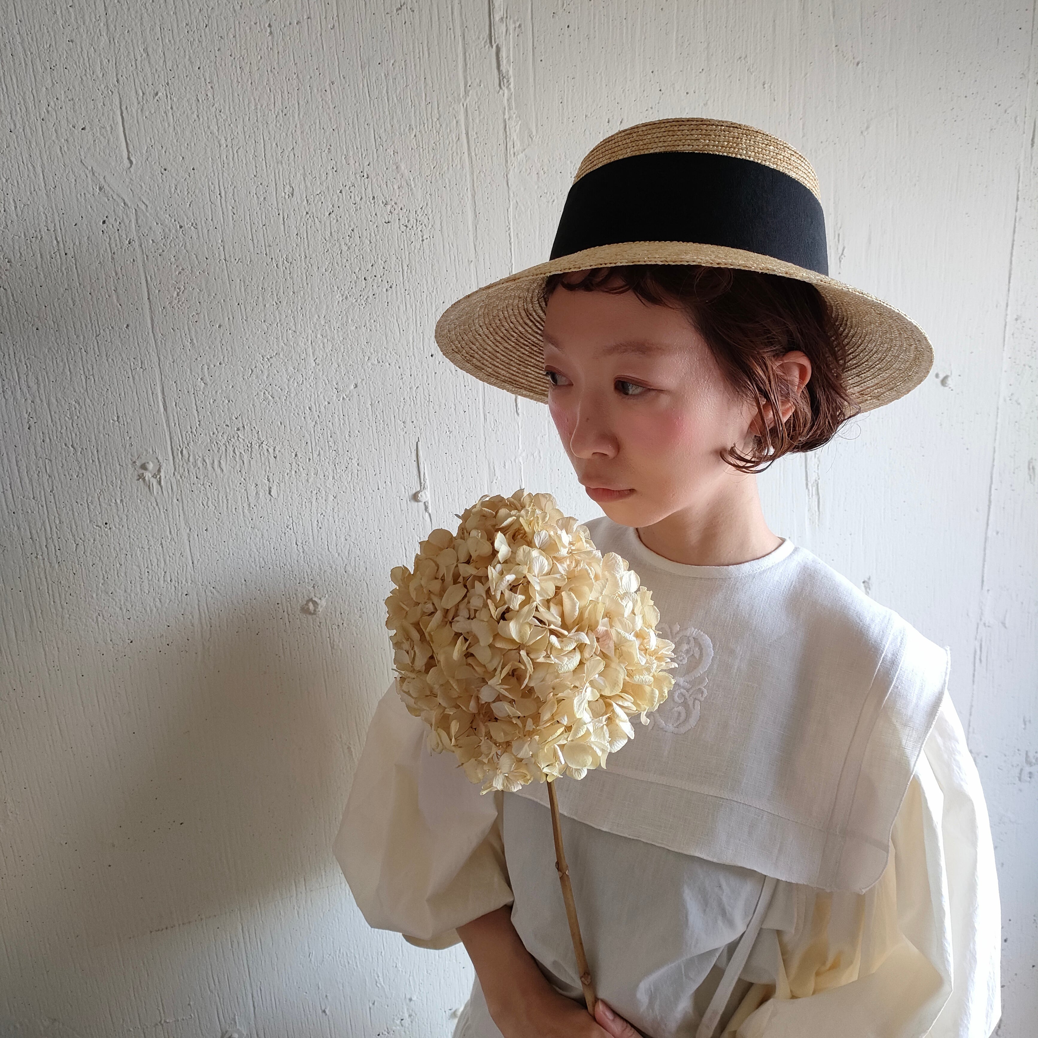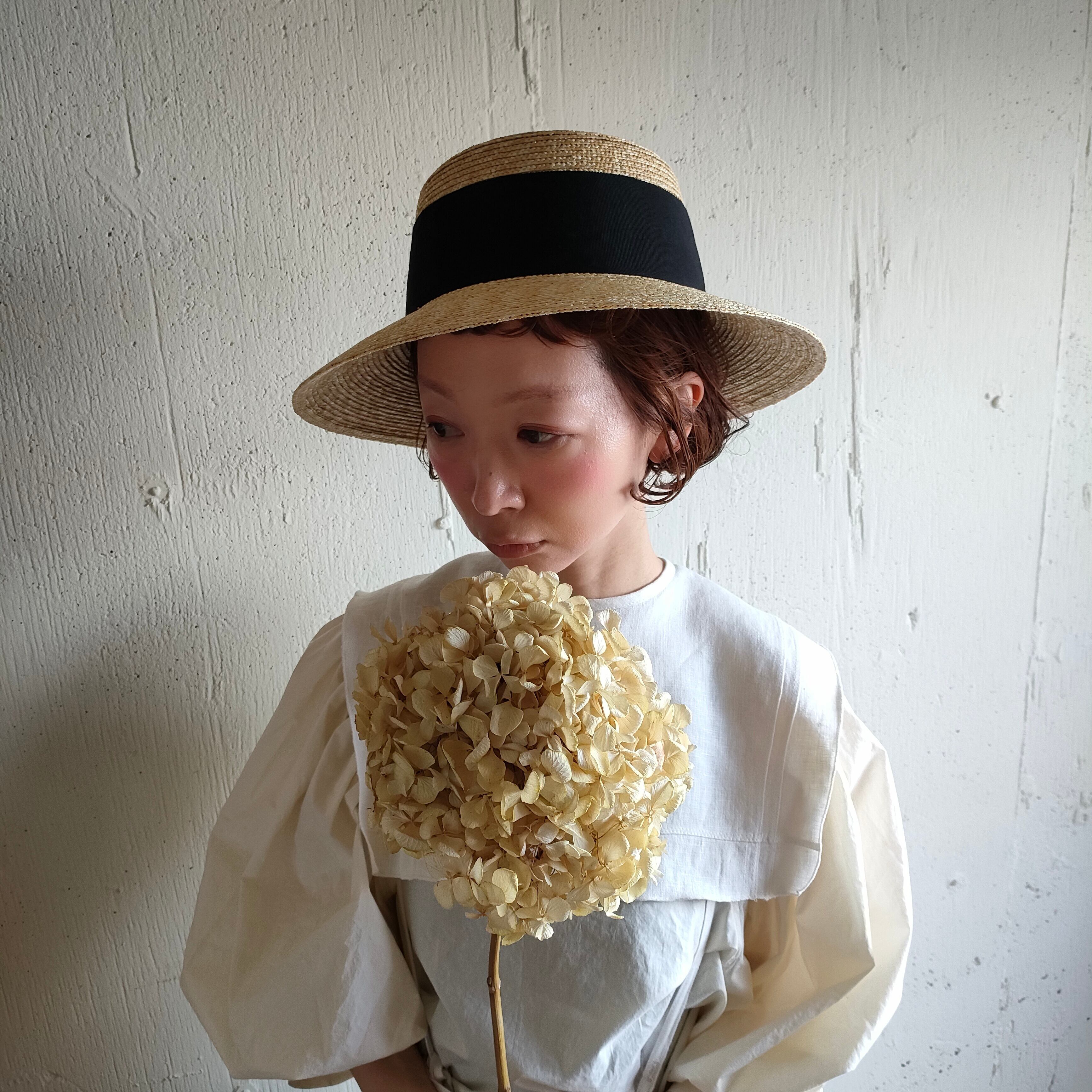 送料無料◆Natural Straw Hat Black Ribbon ナチュラル麦わら帽子 カンカン帽 ストローハット