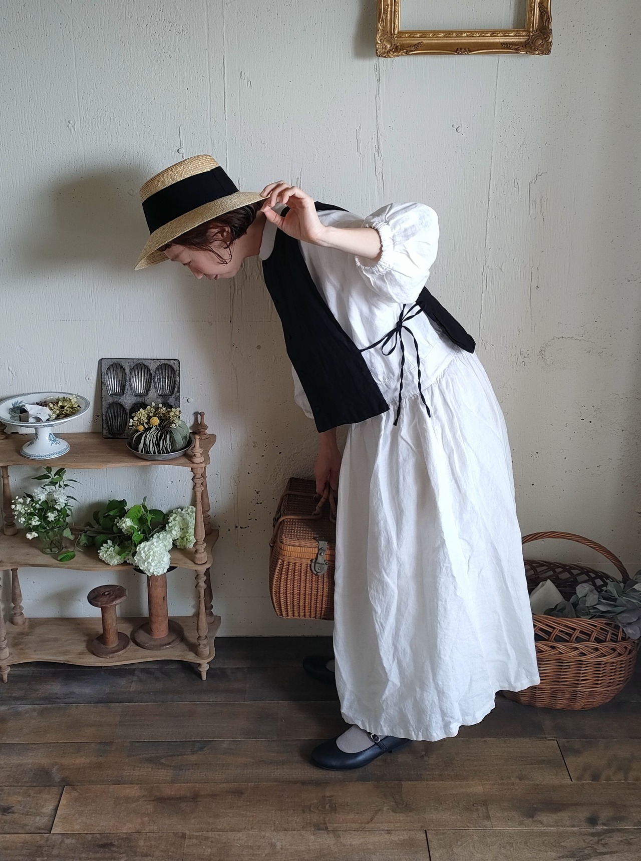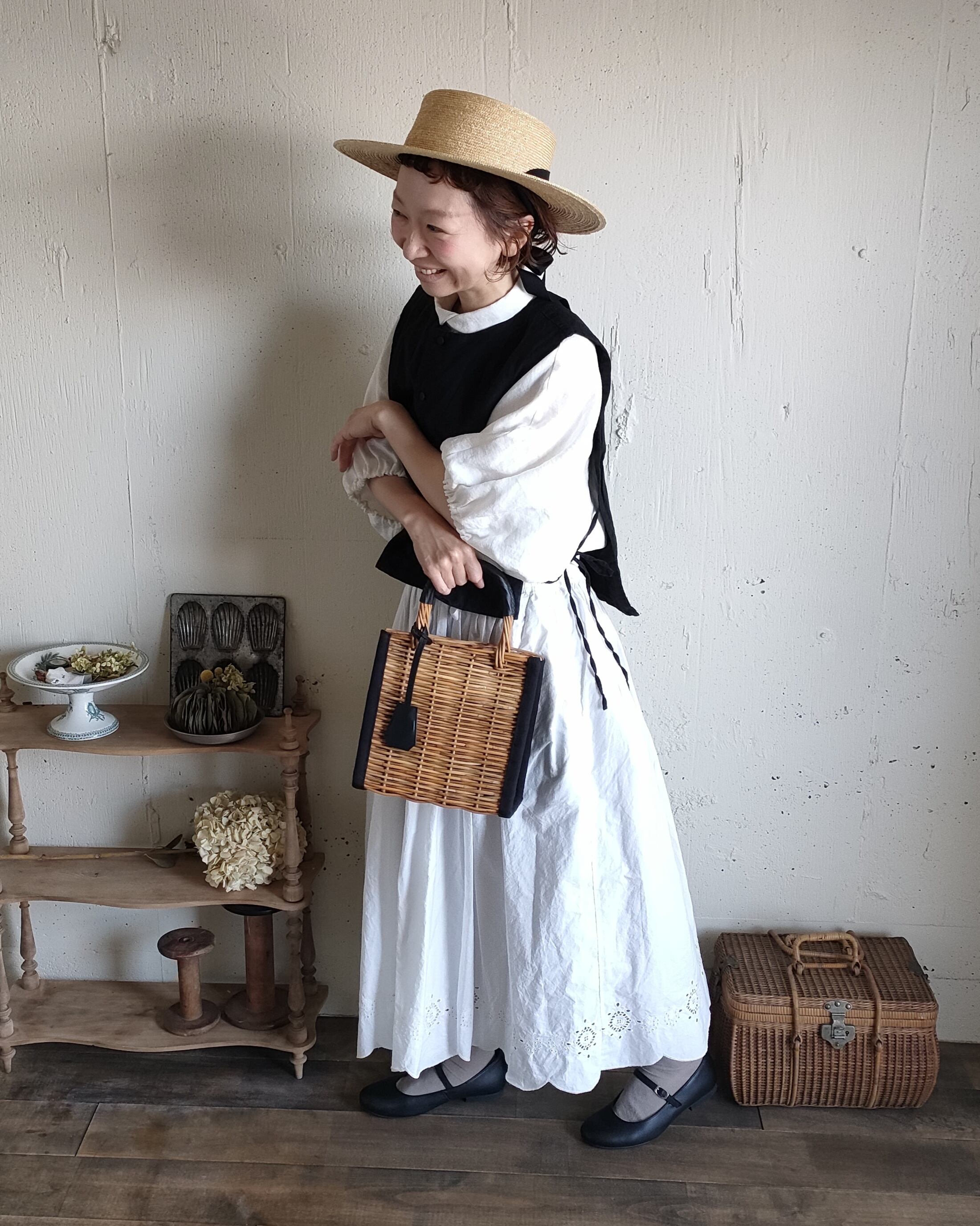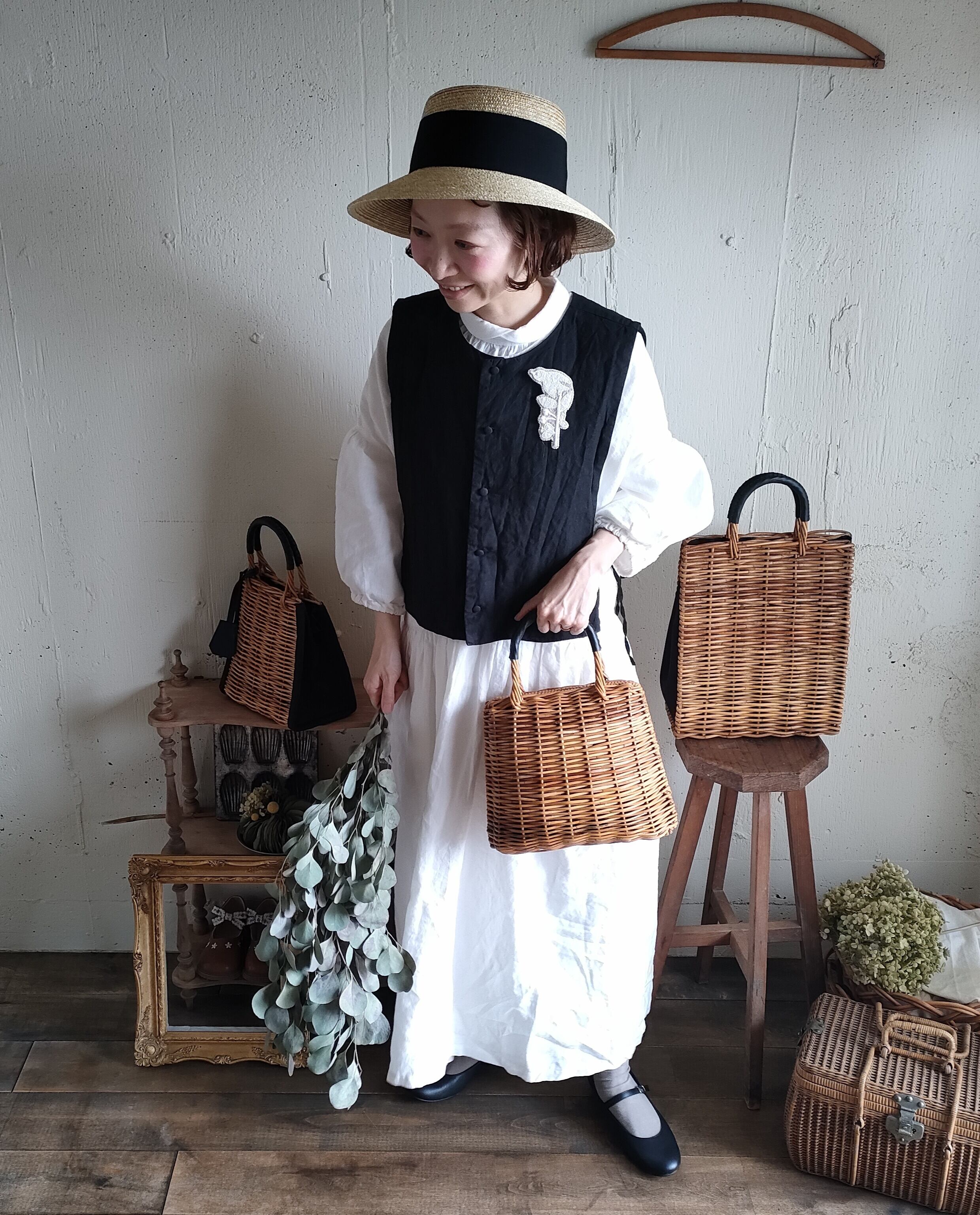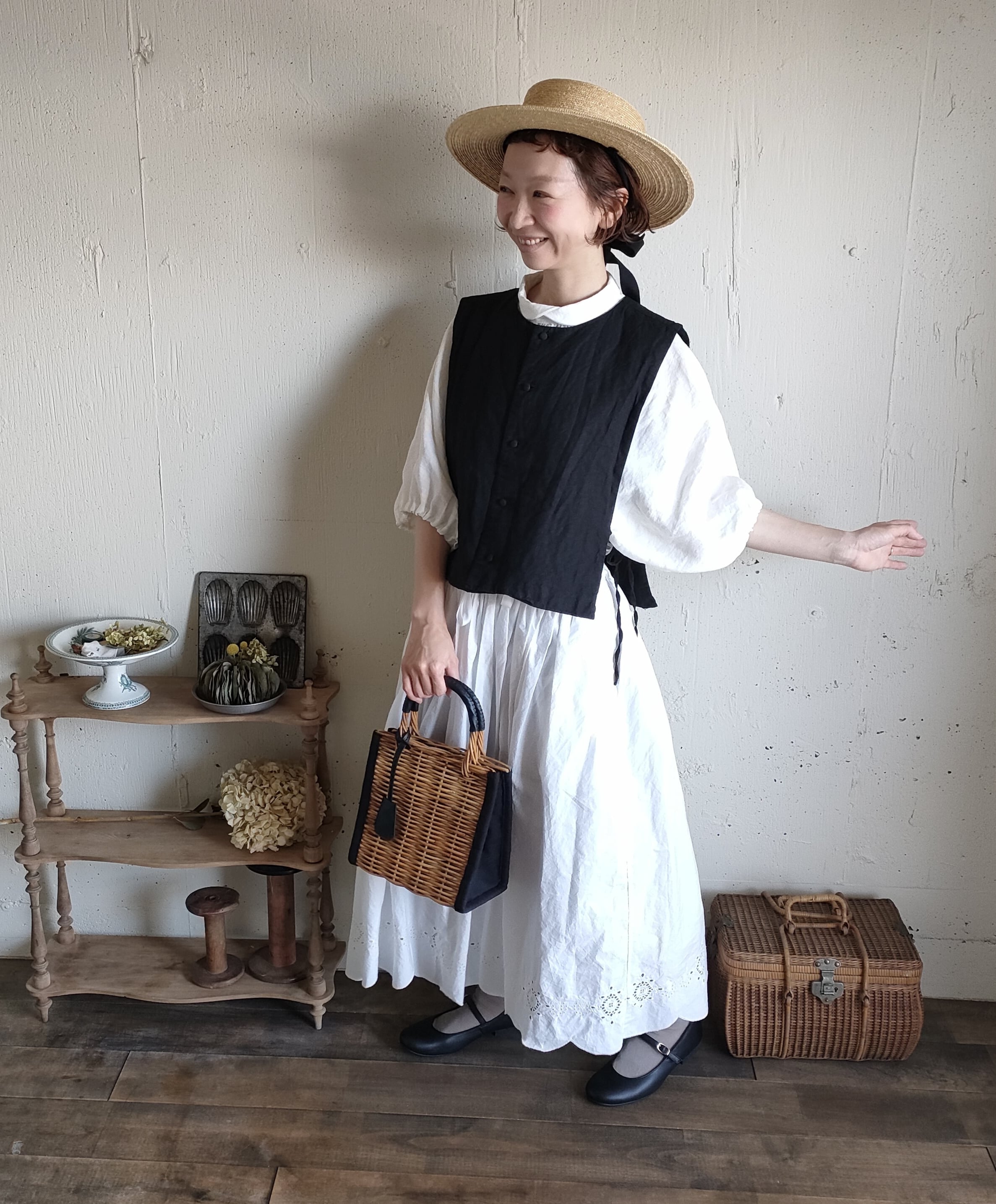 【Noir black】くるみボタンのコットンリネン 2wayジレベスト COTTON LINEN 2way Gilet 前後着ベスト リネンベスト ジレ