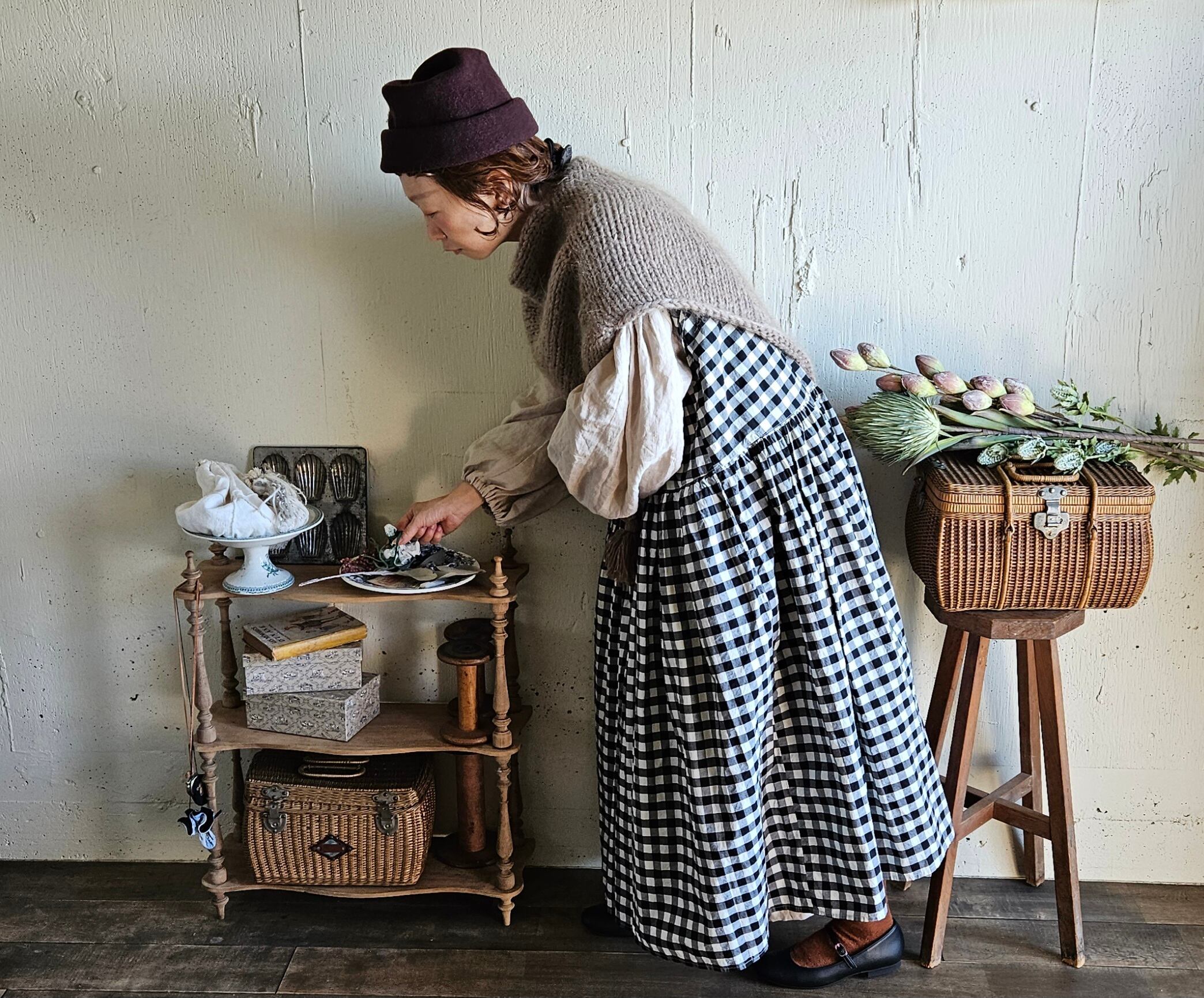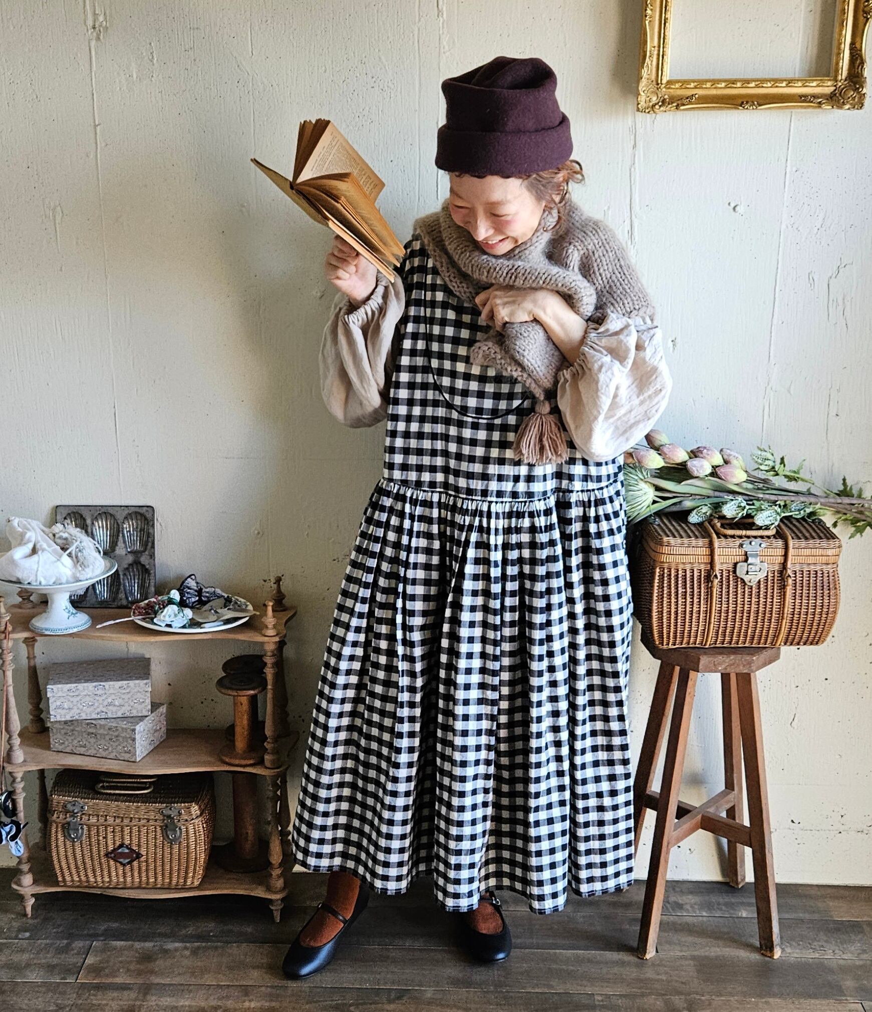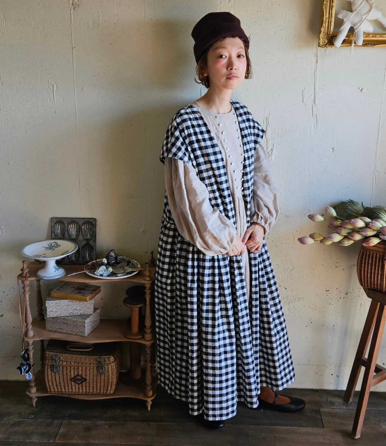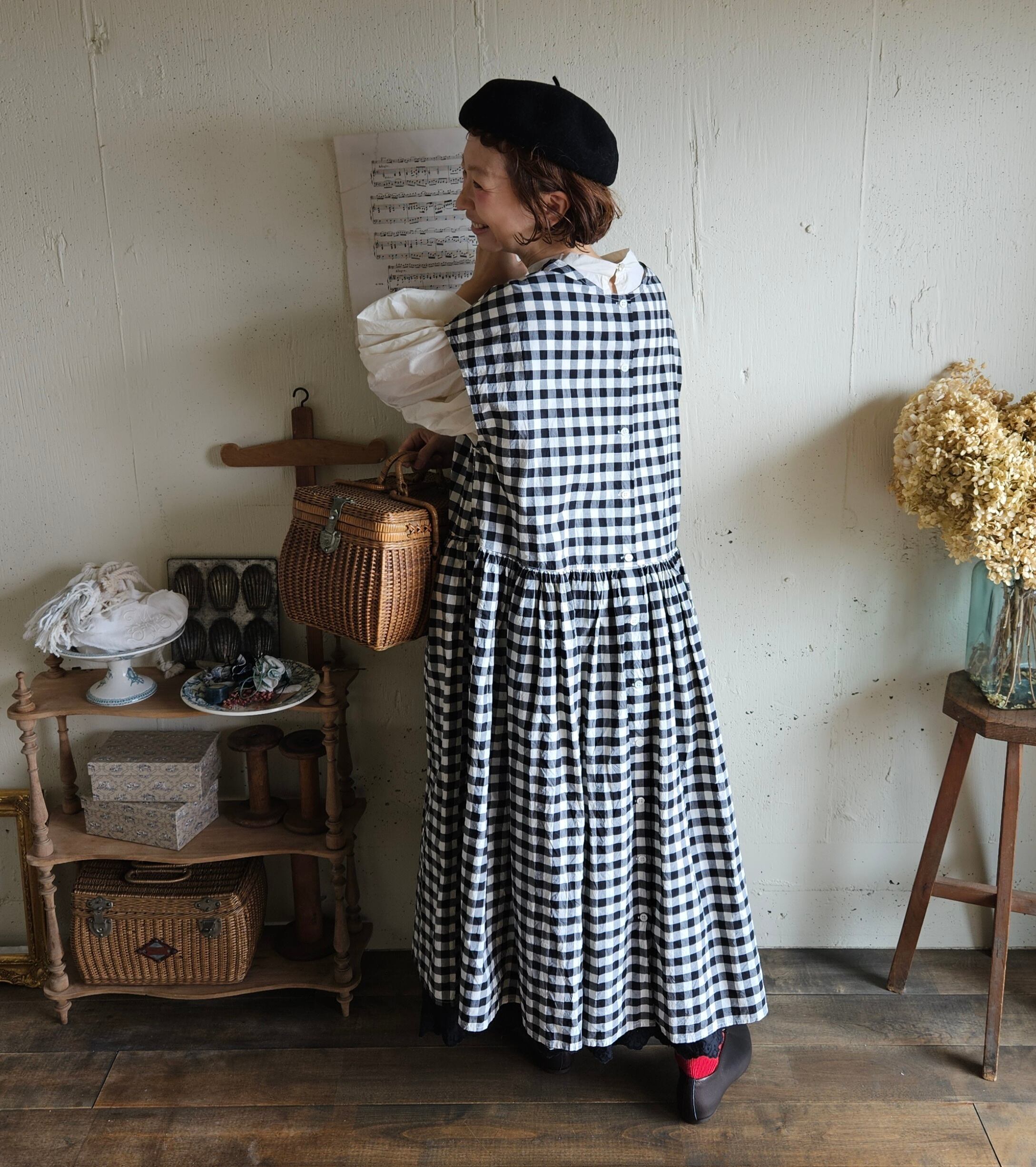 【限定販売】≪送料無料≫別注 gauze × meguri megutte ギンガムチェック クルエラワンピース cruella no sleeve onepice